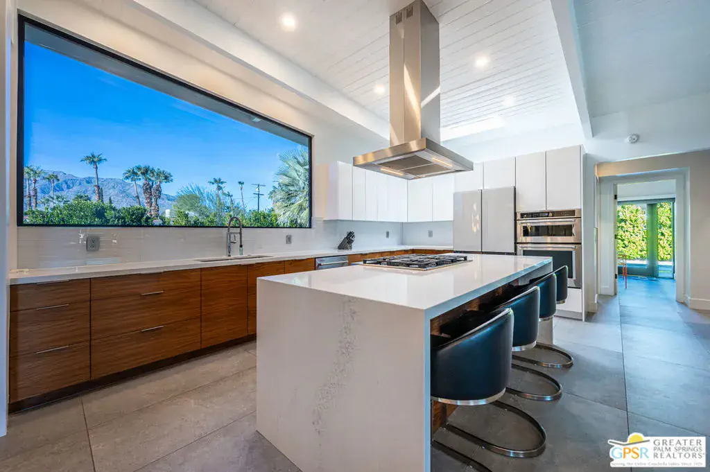 Wait! Stop searching you’ve found it. Mid-Century? Check! Stunningly re-imagined? Check! Pool? Check! Spa? Check! 4 Bedrooms + 3 Bathrooms? Check! That’s right this one checks every box and is ready for you to move in NOW. Built in 1959 by iconic architects Palmer & Krisel, this Alexander Mid-Century Modern has 4 bedrooms, 3 bathrooms, and 2,465 sq ft. located in Racquet Club Estates. Extensively updated while preserving the magic of modernist desert living, the home features classic post-and-beam ceilings, an inviting open floor plan, and design-forward upgrades throughout. The chef’s kitchen showcases walnut cabinetry, a large island, porcelain flooring, and San Jacinto mountain views. Living and dining spaces with walls of glass and sliding doors open to the outdoors creating amazing flow. Recent interior design enhancements include a dramatic custom walnut feature wall in the main living area, with bar cabinetry refaced to perfectly match both book-matched and butt-matched for a cohesive, high-end look. A cabinet-depth Bespoke Gallery refrigerator seamlessly blends into the kitchen cabinetry. The entire interior was freshly painted, while the primary suite now features a custom walnut bed wall, plus a newly added walk-in closet offering exceptional storage. The outdoor living experience was completely reimagined in 2024 and is nothing short of resort-caliber. The private backyard features new concrete and AstroTurf, extensive Ficus landscaping along the perimeter, and a freshly acid-washed pool and elevated spa with waterfall. A fully functional outdoor kitchen with plumbing, new countertops, and a louvered pergola anchors the space, complemented by a fire pit connected to natural gas .The front yard was also upgraded in 2024, featuring a new paver patio, mature transplanted palm trees, AstroTurf, and a pre-installed sleeve for a future natural gas connection ideal for a fire feature or outdoor heater. From a systems and technology standpoint, this home shines: Owned rooftop solar on NEM 2.0, paired with two SolarEdge 9.7kWh batteries App-based Pentair pool system Lutron smart lighting and Ring security system with remote access. EV charging station near the RV parking area HVAC and mechanical systems are approximately five years old. The 2-car garage features a tiled floor and a mini-split system, making it ideal as a gym, studio, or additional entertaining space. Behind gates on the north side, you’ll find RV parking with power, offering flexibility rarely found in this neighborhood. The foam roof was redone in 2021 with a transferable warranty, and the entire exterior was freshly painted in 2024, completing the package. A rare blend of architectural pedigree, thoughtful upgrades, and modern luxury this iconic Mid-Century residence is ready to be enjoyed for years to come.