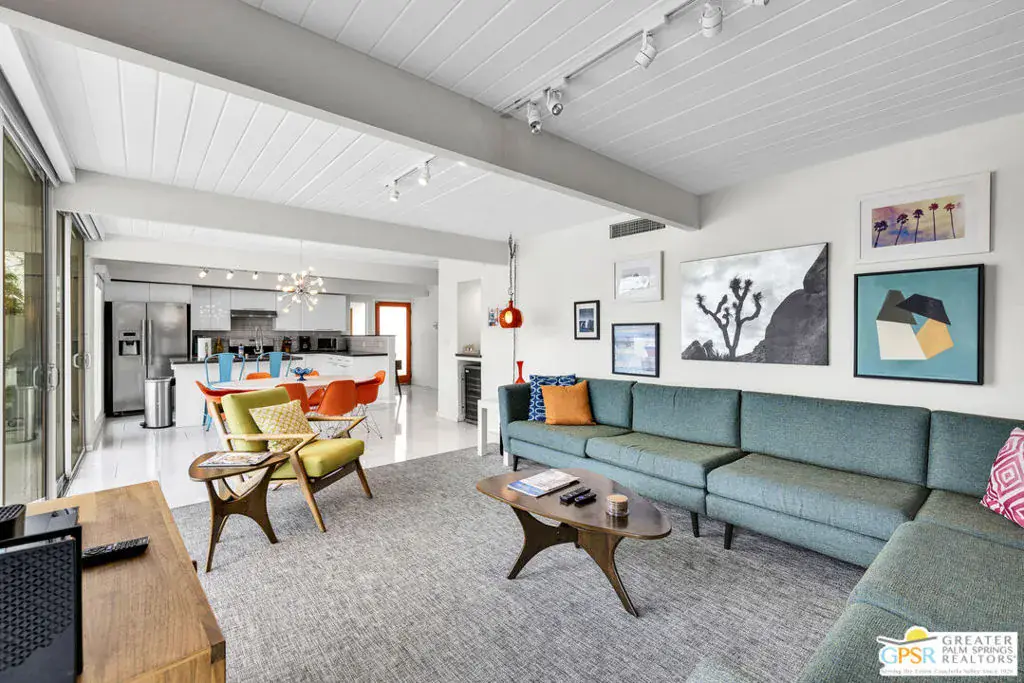 SMASHING Mid Cent Mod, Former home of BOBBY DARIN and SANDRA DEE (aka Mrs. Bobby Darin). Spotless, Pristine Alexander built in 1959, Designed by famous architectural duo Palmer and Krisel , 3 beds, 2 baths, Pool, Hot Tub and stunning Western Mountain Views. Gorgeously updated and FULLY renovated in 2016 By Christopher Kennedy and was featured in his book “Making Mid Century Modern” to its current casual chic elegance while maintaining its distinguishing Mid Cent Mod Features ; Tongue and Grove ceilings,, Wall of glass, (now dual pane), creating bright light airy spaces. The home will include some indoor and outdoor furniture, and also promotional posters for “Gidget” and “Mac the Knife” stars. Also a copy of original grant deed when Bobbie and Sandra Darin took ownership, The property has a gorgeous pool and above ground Hot Tub, A bocce ball court for a bit of rowdy good fun and alternately a hammock in a secluded spot for some Zen moments. Property has been a very successful Vacation Rental hosting such luminaries as Designing Women’s JEAN SMART. The house next door was owned by Milburn Stone who played “Doc” in Gunsmoke and two doors away was home to Jackie Cooper a prominent member of “Our Gang” also known as the “Little Rascals”