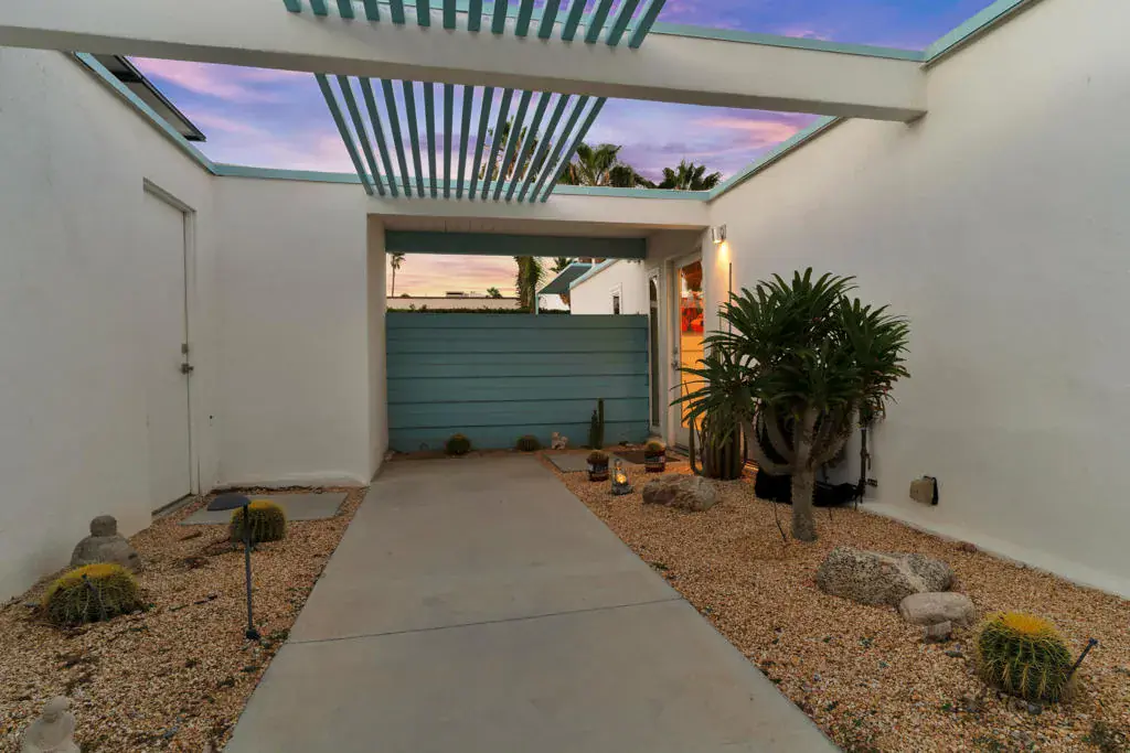 Welcome to 600 E Alexander Way, a quintessential 1959 Mid-Century Modern gem located in the sought-after Racquet Club East neighborhood of Palm Springs. Designed by renowned architects Palmer & Krisel and built by the Alexander Construction Company, this architecturally significant home beautifully blends timeless design with high-end modern upgrades — making it one of the most updated mid-century homes on the market today. Situated on a corner lot with the most amazing unobstructed mountain views, thoughtfully reimagined with over $175,000 in improvements, the home includes a fully warranted list of updates: new HVAC with air scrubber & surge protection, updated sewer line, windows, desert landscaping with irrigation system, roof, French drain system, mini-split A/C in the primary bedroom, insulation, security camera/alarm system, garage cabinets, epoxy flooring, 27 solar panels, dual security gates, updated pool & equipment, water purification system, and more. And yes — all warranties are transferable to the new owner. As you step inside, you’re immediately greeted by the charm of exposed tongue-and-groove wood ceilings, floor-to-ceiling windows, and an open floor plan designed for effortless indoor/outdoor living. The home features sleek custom cabinetry, a chef’s kitchen with a dramatic waterfall island, and remodeled bathrooms with tiled walk-in showers. Step outside to your private desert oasis, complete with a new pool with tanning shelf and Pentair ultra temp electric pump, hot tub, and cantilevered sunscreens that provide shade while complementing the home’s original design. All this with unobstructed San Jacinto Mountain views as your backdrop. Whether you’re seeking a full-time residence, weekend escape, or high-end vacation rental, this property is ready to impress. No HOA. Fee simple — you own the land