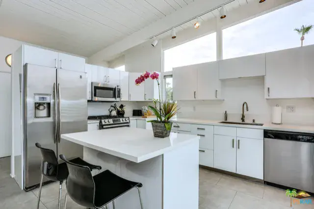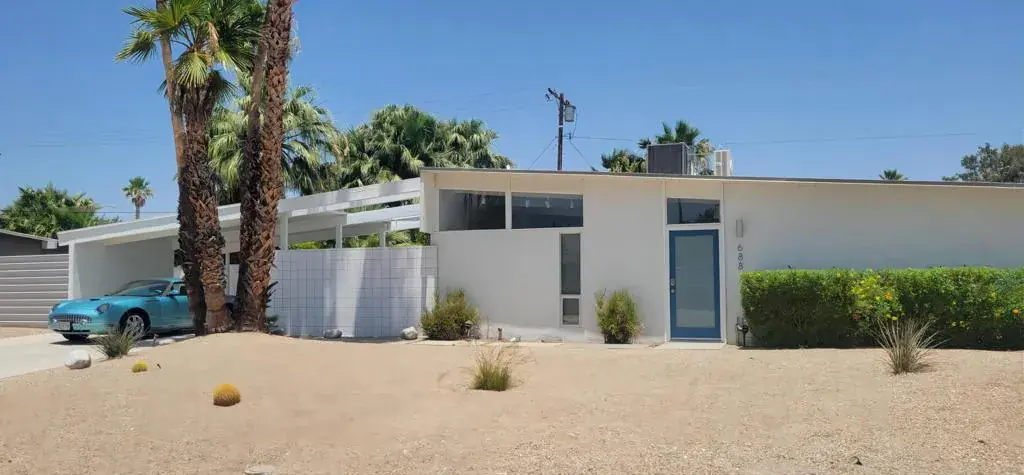 Vacation Rental. Minimum 4 night rental minimum. PS ID # 2795. Posted rate is monthly, good thru Sept 2024.This stunning William Krisel-designed home, built by Alexander & Co in 1959, has been beautifully remodeled while preserving its mid-century charm. The original open carport, sweeping rooflines, and panoramic clerestory windows remain intact, alongside the restored boomerang-shaped pool, now enhanced with an integrated spa and sweeping mountain views.Step back in time with original ‘Lava’ lamps and authentic mid-century furnishings, while enjoying modern conveniences like free WiFi, hidden solar panels, and contemporary appliances. Relax by the fire pit, play bocce ball, or fire up the gas grill and sing your favorite rock-n-roll tunes by the pool.Rates:June-Sept: $319/ntOct & Nov: $499/ntDec: $599/ntJan-April: $639/ntMay: $569/ntPool heating, utilities, and fees are included, plus tax. An $800 refundable security deposit is required. Call the agent for availability