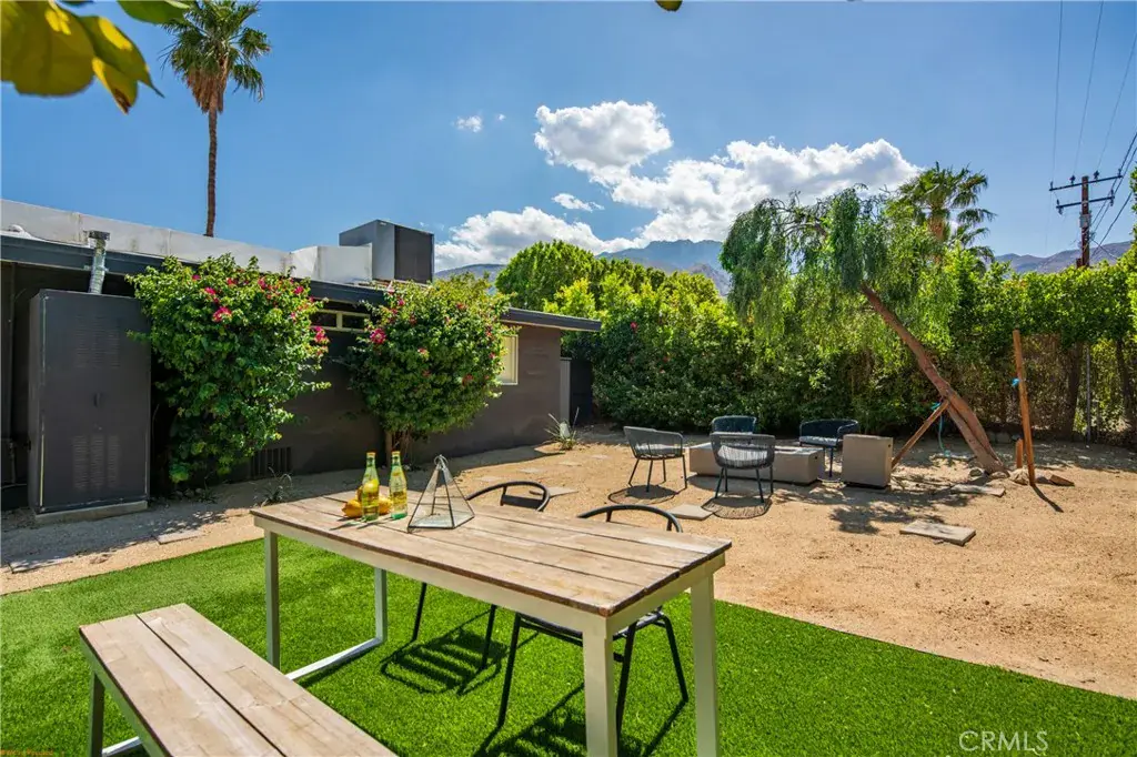 This is the one! Discover a stunning 1958 Mid-Century Modern pool home in World Famous Palm Springs, reimagined and updated by Los Angeles based HS Dwellings & Design in 2021. Expanded 4-bedroom, 3-bath layout, this home embodies desert cool with polished concrete floors, whitewashed walls, and expansive San Jacinto views. The open-plan living area is an entertainer’s dream, with three guest bedrooms on one side and the primary suite—permitted as a junior ADU—on the other, featuring a sitting area, fireplace, and direct pool/spa access. Flexible layout allows the master suite to be easily locked off, creating a separate, rentable unit if desired. Outside, your private oasis awaits on a corner lot, featuring mature trees, an al fresco dining space, firepit, and a brand-new pool and spa. Recent upgrades include a new roof, electric panel, bathrooms, and kitchen, washer and dryer, some doors and windows, pool equipment replaced in 2023 (pool pump in 2025), blending mid-century charm with modern convenience. Situated just minutes from the Uptown design district’s shopping, dining, and nightlife, this spot is perfect for a full-time residence, second home, mid term rental, or short term Airbnb. Feee simple land, which means you own the land. No HOA. Sale can include furnishings.The neighborhood short-term rental permits are still available, don’t miss the chance to live, invest, and unwind in pure Palm Springs style!