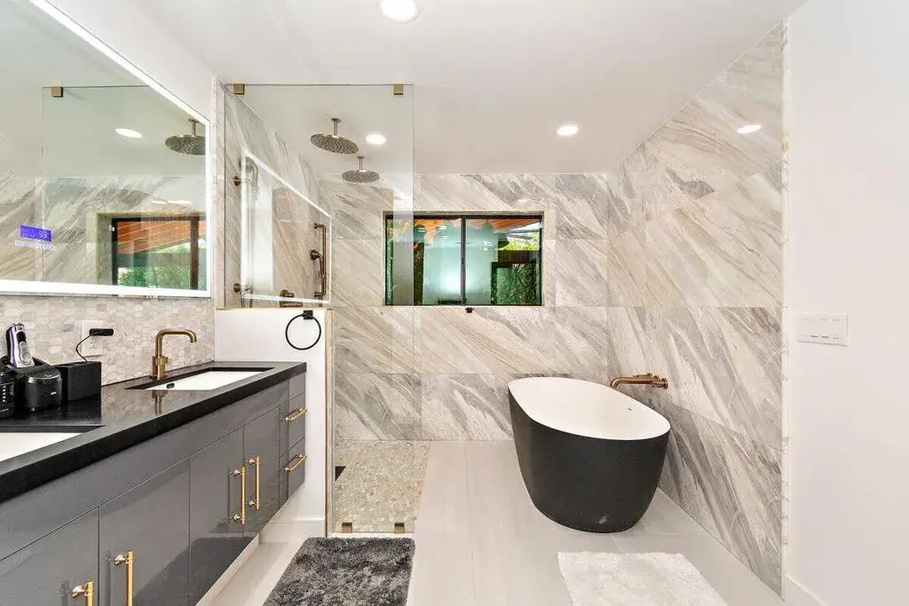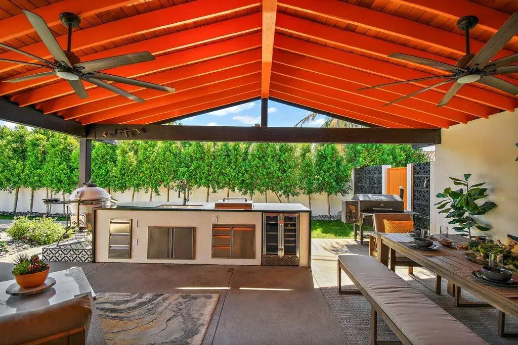 Newly remodeled and thoughtfully designed, this stunning home offers exceptional indoor-outdoor living with custom upgrades throughout. The backyard is an entertainer’s dream featuring a 20′ x 20′ covered patio with two large ceiling fans, an additional 400 sq. ft. of outdoor living space, and views of the sparkling saltwater pool and spa. The outdoor kitchen is fully equipped with a cooktop, sink, built-in BBQ, and beverage chiller, perfect for year-round enjoyment. The property offers extra-long RV/boat pull-through parking, plus space for four additional vehicles in addition to the two-car garage. The front exterior is beautifully appointed with a block wall, flowering vines, and two automatic gates providing privacy, security, and convenience. Inside, the open-concept design showcases floor-to-ceiling sliders, a custom stone fireplace, and a chef’s kitchen with high-end appliances, a wine fridge, and a butler’s pantry. The luxurious primary suite features dual showers, marble finishes, and a freestanding soaking tub. The guest bathroom includes a steam shower and Bluetooth lighting for added comfort and relaxation. This home is equipped with numerous upgrades and thoughtful details throughout, a must-see to appreciate the quality and craftsmanship.