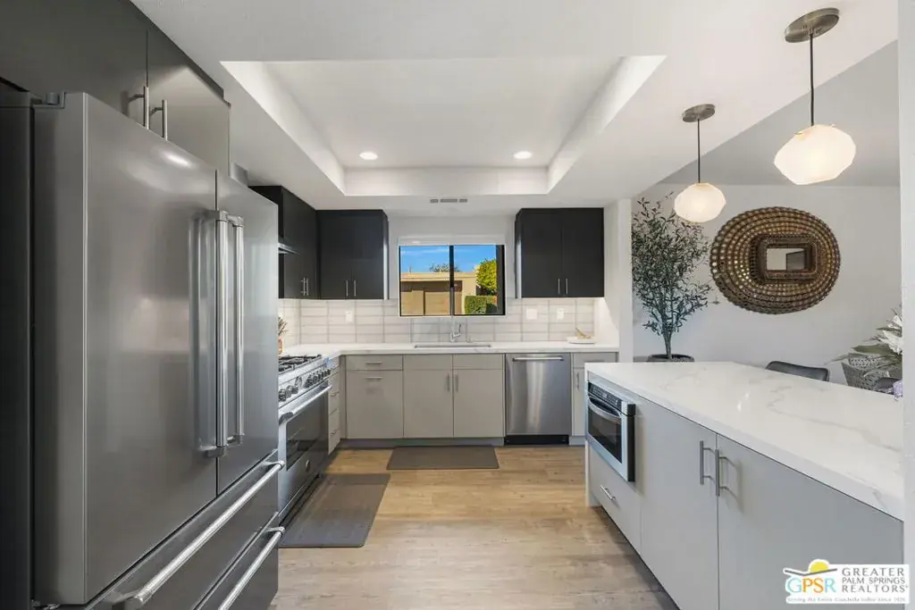 The property is being leased seasonally, so please call to confirm availability. Not available January, February, or March ** Monthly Rates: November to December: $6,500 / April: $7,000 / May to October: $4,000**Escape the winter chill and immerse yourself in the warmth of Palm Springs, living at its finest! Welcome to our contemporary-designed three-bedroom home nestled within the prestigious Rose Garden community. Designed by the renowned architect Donald Wexler, this mid-century masterpiece offers an unparalleled experience of luxury and comfort. Step inside and be greeted by 1608 square feet of meticulously curated living space. Every corner of this end-unit condo exudes sophistication and style, making it the perfect retreat for snowbirds seeking a taste of desert paradise. Indulge your culinary passions in the gourmet kitchen, featuring Quartz Counters, chic matte-finished cabinetry, and top-of-the-line Italian Bertazzoni appliances. Whether cooking up a feast for friends or enjoying a quiet meal with loved ones, this kitchen will surely impress. The spacious living area invites you to unwind in style with its seamless flow between indoor and outdoor spaces. Host gatherings with ease, or relax and soak in the desert sun from the comfort of your own home. Outside, discover a world of resort-style amenities waiting to be explored. With two pools, four pickleball courts, and two tennis courts at your disposal, there’s no shortage of ways to stay active and entertained. And when you’re ready to venture out, you’ll find yourself just moments away from world-class shopping, dining, and entertainment options. Don’t let another winter pass you by seize the opportunity to make this exquisite condo your home away from home. Book your stay today and experience the ultimate in Palm Springs living at The Rose Garden. Your oasis in the desert awaits! All utilities included – $500 monthly credit towards utility bills (gas, water, power); any surplus will be charged to the guest. $350 Pet Fee per pet. A cleaning fee is charged to the tenant upon departure. Weekly housekeeping is offered for an additional charge.