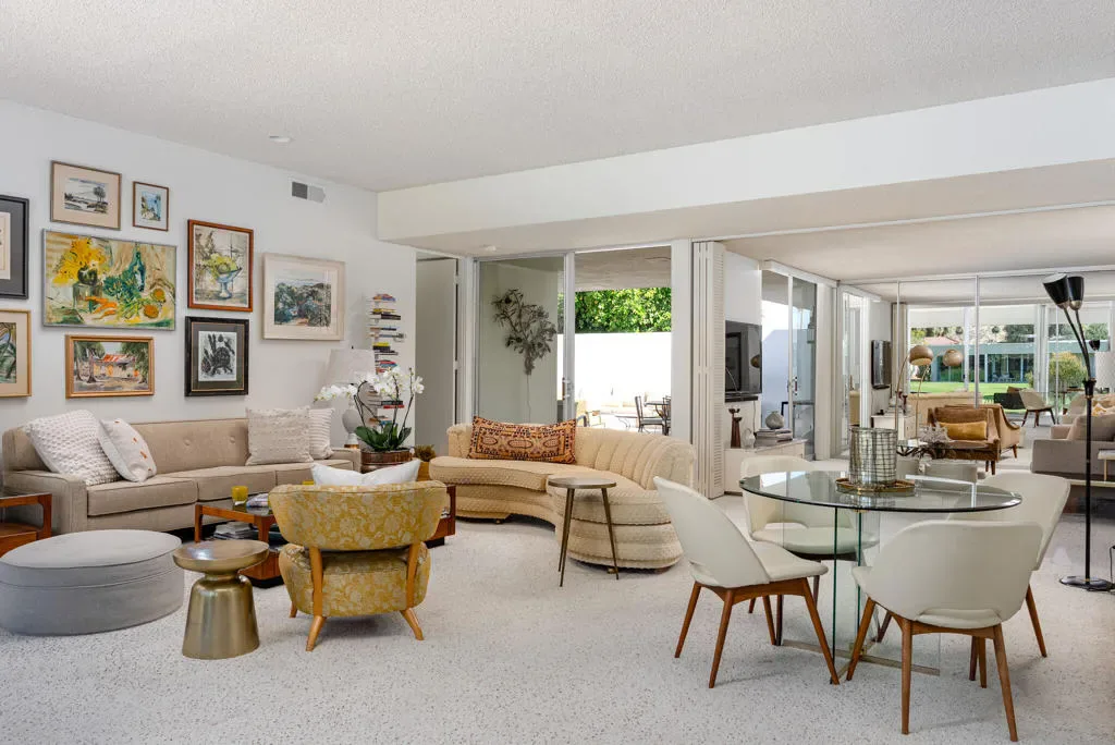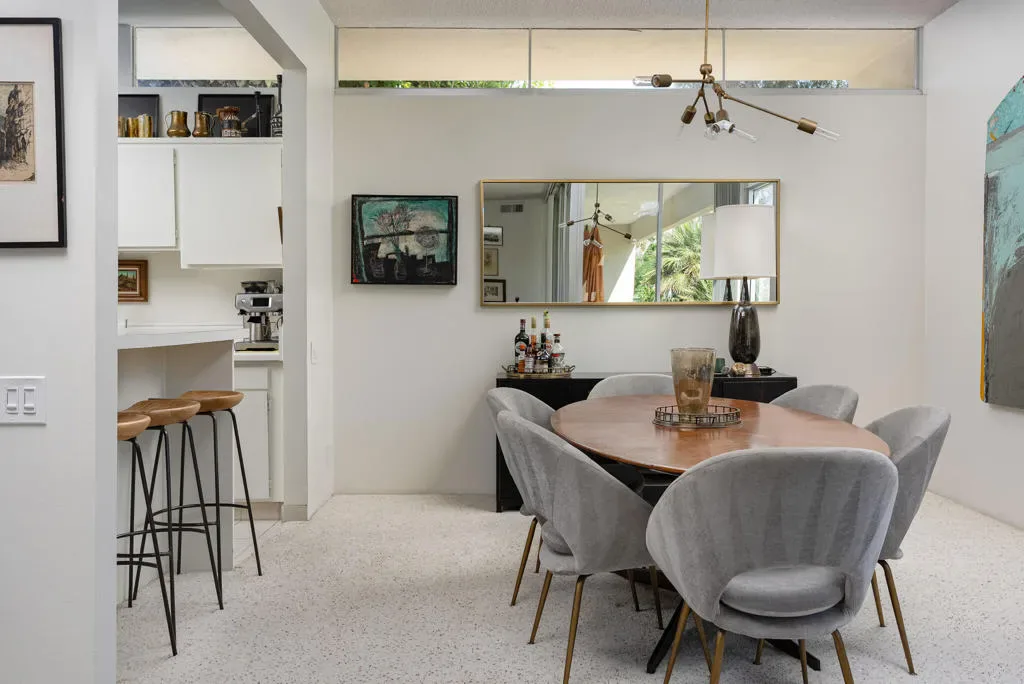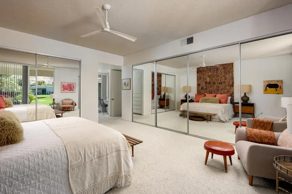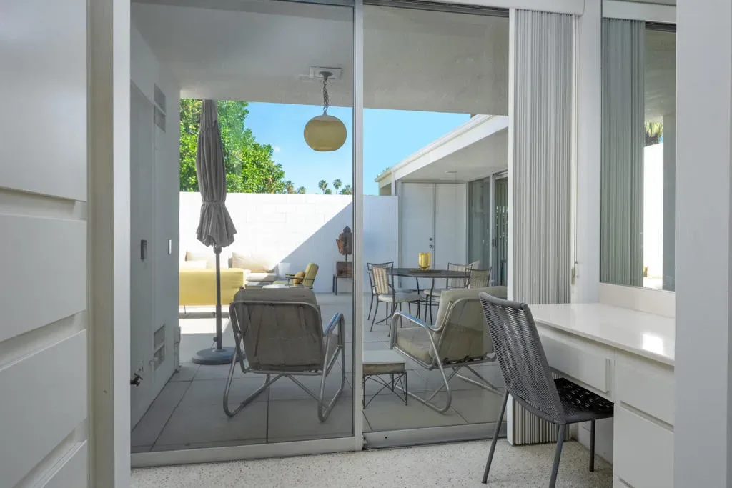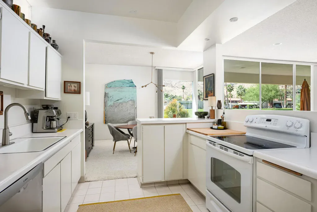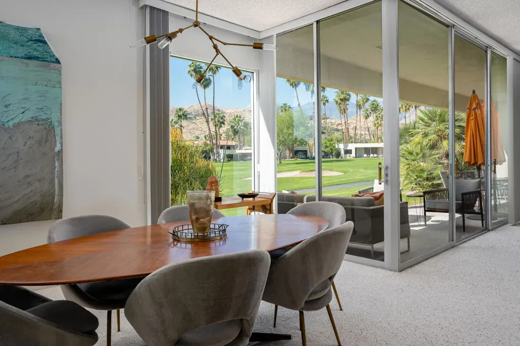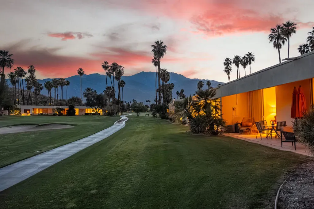 Welcome to an exceptional opportunity in the Seven Lakes Golf & Country Club–one of South Palm Springs’ most sought-after guard-gated communities. Perfectly situated on the most centrally located street within Seven Lakes, this beautifully maintained two-bedroom plus den, two-bath residence offers the ideal blend of classic mid-century modern design and thoughtful system upgrades.Set along the 11th fairway of the Ted Robinson-designed golf course, the home enjoys breathtaking south-facing mountain views that create a stunning backdrop for everyday living. The expansive, updated courtyard is designed for both relaxation and entertaining, featuring pavers, a built-in fire pit, bench seating, and panoramic vistas of the surrounding mountains.Inside, the home reflects a true ”time capsule” aesthetic–celebrating its mid-century roots while benefiting from key modern improvements. Recent upgrades include a newer HVAC system, roof, replaced main water line, updated internal plumbing, and water heater–providing peace of mind for years to come. The property also includes a private garage space for added convenience.An electrical panel replacement is currently underway, with permit pending through the City of Palm Springs, offering additional value and future readiness.The flexible floor plan includes a spacious den and an extended dining area, enhancing both livability and entertaining potential. Gently lived in and lovingly maintained, this home presents a rare chance to own a classic architectural gem with essential upgrades already completed.Experience the timeless appeal, vibrant community, and unparalleled lifestyle that Seven Lakes has to offer.Located behind The Parker Palm Springs and past the 24-hour guarded gate at Seven Lakes, ‘The Gem of the Desert’ offers a unique elevated lifestyle with its Ted Robinson-designed 18-hole executive golf course, 15 pools and spas tennis and pickleball. The iconic clubhouse, designed by celebrated mid-century architect William F. Cody, offers a private restaurant and bar, creating a vibrant social hub for residents and their guests alike. Additional community features include: electric vehicle charging stations, and the convenience of an on-site HOA office with a dedicated general manager and staff.
