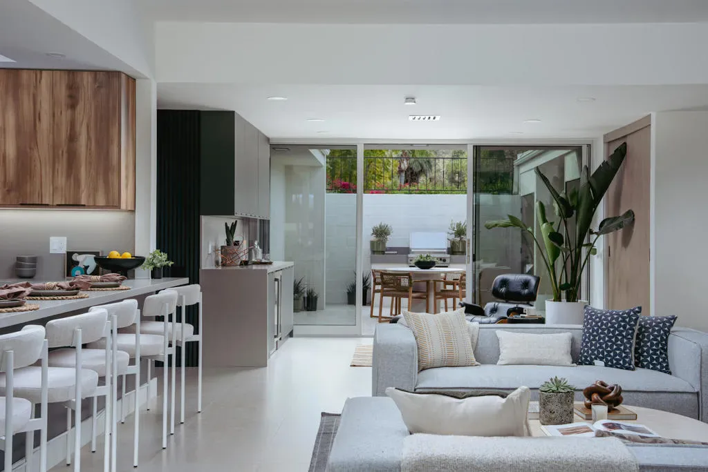 This modernist dream home, in the most desirable floorplan at the coveted Seven Lakes Country Club, has been perfectly reimagined in 2025 for today’s desert lifestyle. Spread out over 2200 sq ft in this Richard A. Harrison designed 3bed/3bath. Inside its shadow-blocked walls, this spacious unit’s airy layout is highlighted by large format tile floors that extend onto your multiple outdoor spaces. The huge kitchen has been opened to the spacious living and dining areas, allowing you to entertain in style. Finished with custom cabinetry, your high end appliances include a paneled Fisher & Paykel refrigerator and 5 burner gas range, dual wall ovens and a large breakfast bar with waterfall counters. The interior has been extended to create a bar with a wine fridge, to serve cocktails in your private walled courtyard. There you’ll take in the view of John Lautner’s iconic Bob Hope estate on Southridge, or make dinner on your newer built-in Viking grill. The North end of the home offers walls of glass sliders which open out onto a green leisure terrace with sweeping views of the double fairway and the majestic San Jacinto mountains. All three spacious bedrooms offer sleek custom closets, as well as walk in rain showers in both primary suites. Warm wood tones on all the new cabinetry and doors throughout the home bring respite from the bright desert sun. Out your door, the tranquil pool is just steps away. Past the 24-hour guarded gate, ‘The Gem of the Desert’ offers a unique elevated lifestyle with its Ted Robinson-designed 18-hole executive golf course, 15 pools and spas and lively William Cody designed clubhouse waiting to welcome you to its formal dining room, casual cocktail lounge and a terrace overlooking the famous Seven Lakes fountain. Welcome home!