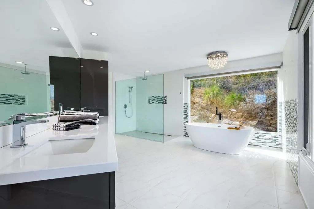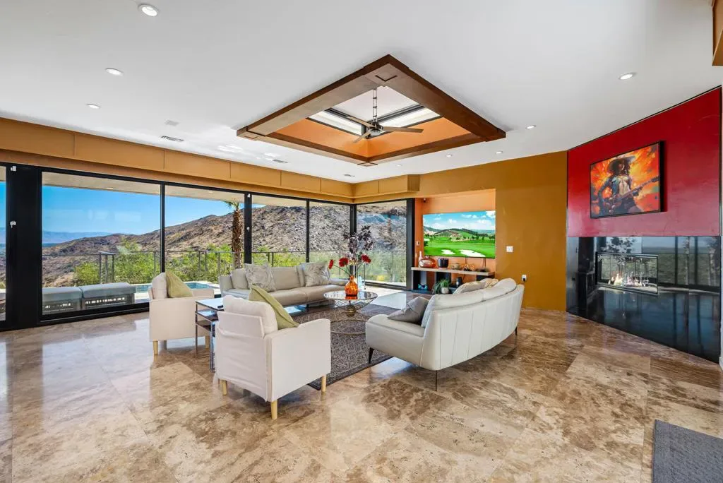 Motivated Seller! Price improvement of another 300K!Breathtaking 270-degree views from this spectacular home in famous Southridge, an exclusive gated 22-home community nestled in the mountains and known for its long history of celebrity-owned homes, including those of Bob Hope, Steve McQueen, William Holden, Suzanne Somers, and the Elrod House, to name a few. This updated Mid-Century Modern home offers 270-degree views, including the Valley Floor from Palm Springs to the Salton Sea. The home offers five ensuite bedrooms, a powder room, and boasts a bright and open floor plan, extreme privacy, a quality pool/spa, a large patio with a built-in barbecue, and a private fire pit on the SW corner of this estate-sized lot. There’s an additional private spa on the east side of the patio, offering the same spectacular Coachella Valley views and city lights at night. The perfectly appointed Chef’s kitchen, floor-to-ceiling glass walls, ceiling fans, wet bar, electric blinds throughout, and the second workout room (converted from a 3rd garage stall) all make this home special. The second level offers one primary bedroom with a fireplace, a recently updated bathroom, a walk-in shower, a standalone soaking tub, a large walk-in closet, sliders to your private deck, and a separate lock-off office. An additional upstairs ensuite bedroom/exercise room has its Private ‘Zen ‘ deck. Downstairs, you will find one more Primary Suite and two other En-Suite bedrooms, plus a powder room for your guests. Furnished per writtenInventory. Easy to show on short notice. You can contact either of the Listing Agents for a showing. Rick Parnell 360-280-4178 or Mark Brack at 760-515-7215. The Listing agent must accompany all showings. It is an exclusive neighborhood, and all visitors need to be accompanied by the listing agent.