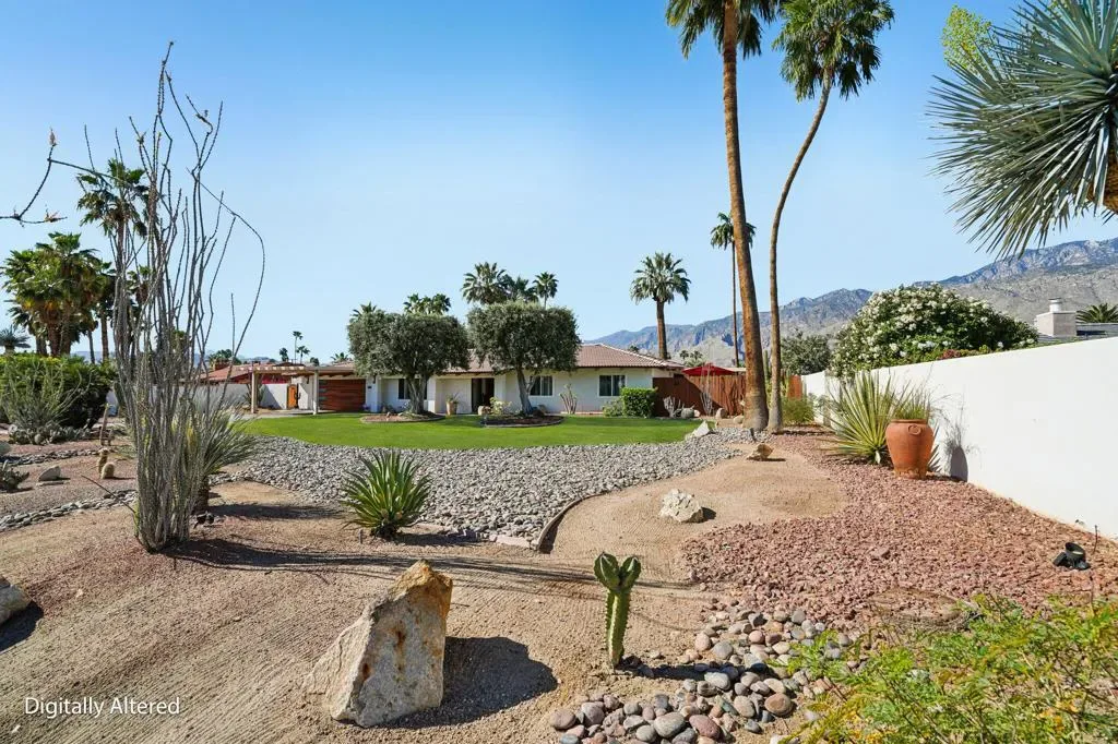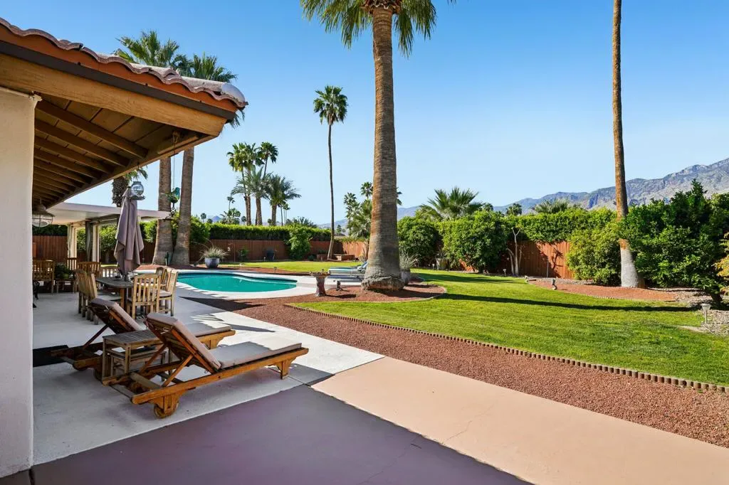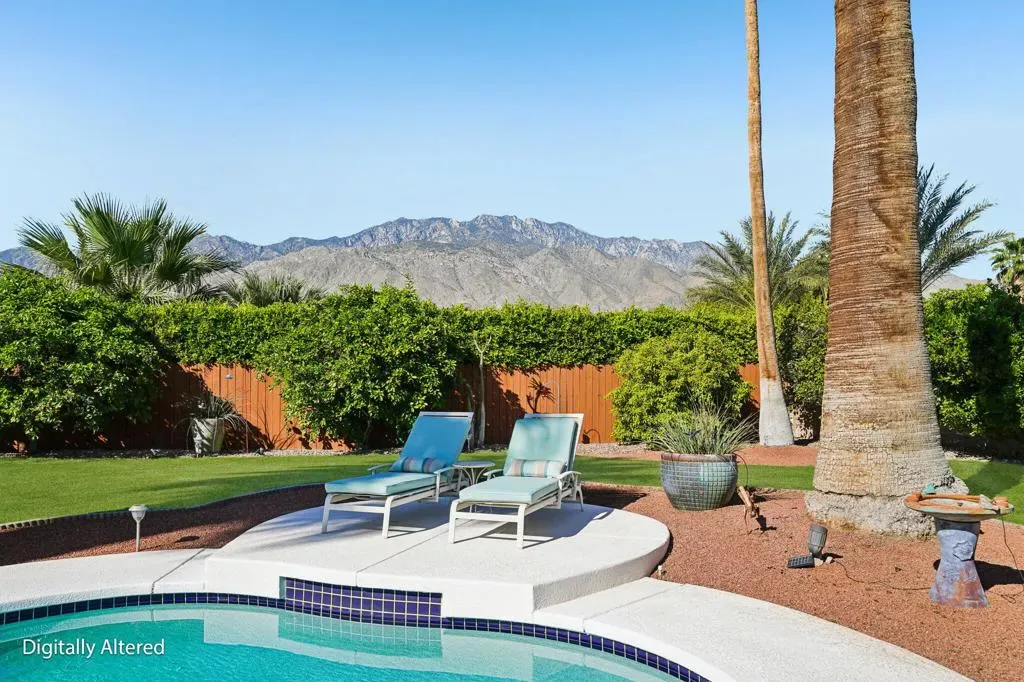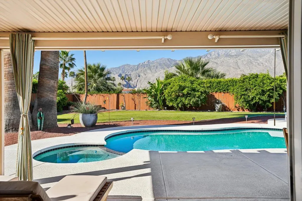 Prepared to be blown away by this expansive 17,400 sq ft lot with sweeping views including the Palm Springs Tram & Tahquitz Witch, San Jacinto mountain views & more. Not to mention, no power lines behind, and owned solar (owners haven’t had a bill since 2023)! This 3BD/2BA Palm Springs home on FEE land (you own the land) offers a rare combination of privacy, and usable outdoor space with all the location convenience that Central Palm Springs offers! Designed for true indoor-outdoor living, the backyard features a large pebble tec saltwater pool and spa, multiple conversation areas, and a unique outdoor entertainment setup with pool table and TV, ideal for relaxing or hosting. Inside, the home offers approximately 1,500+ sq ft with a well-maintained layout, vaulted beamed ceilings, and a comfortable flow between living, dining, and outdoor spaces. The kitchen includes top of the line JennAir appliances (inside and out), granite countertops, BBQ pass through window, updated cabinets, and functional workspace for everyday living or entertaining. The primary suite is thoughtfully positioned for privacy and includes direct access to outdoor areas & primary bath with updated subway tile shower. Main bath has glass block, two vanities plus pool/outdoor access. Upgraded windows contribute to interior comfort/noise reduction. Additional features include: upgraded ductwork/attic insulation, a two-car garage, low-maintenance desert landscaping, citrus trees, and Fee Land (you own the land). Located close to downtown Palm Springs, dining, shopping, and local amenities, offering convenience without sacrificing space or setting. A unique opportunity to own a property where lot size, views, and outdoor lifestyle take center stage. This is one of those properties that you know the minute you walk in it’s been well maintained! Properties offering this combination of lot size, views, and outdoor functionality are increasingly difficult to find in this area so don’t delay!