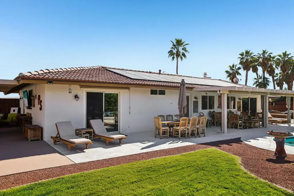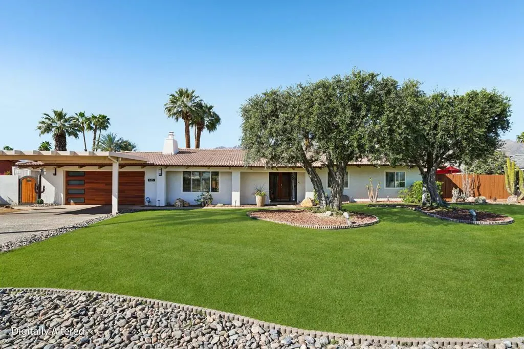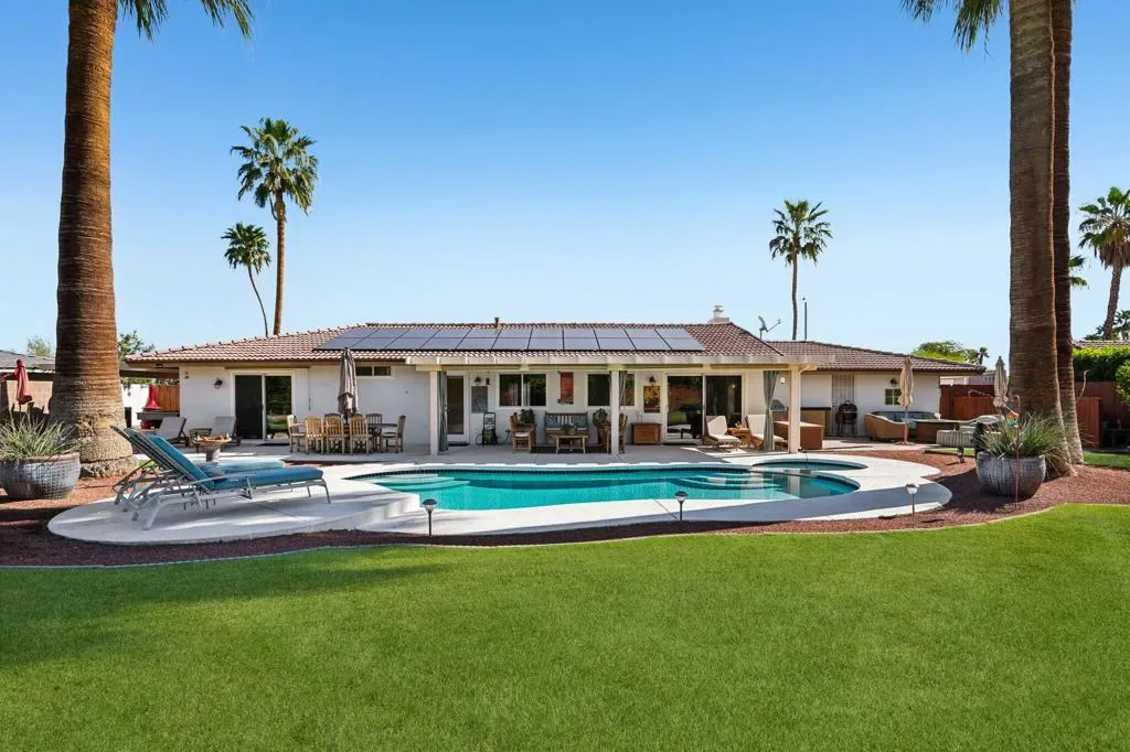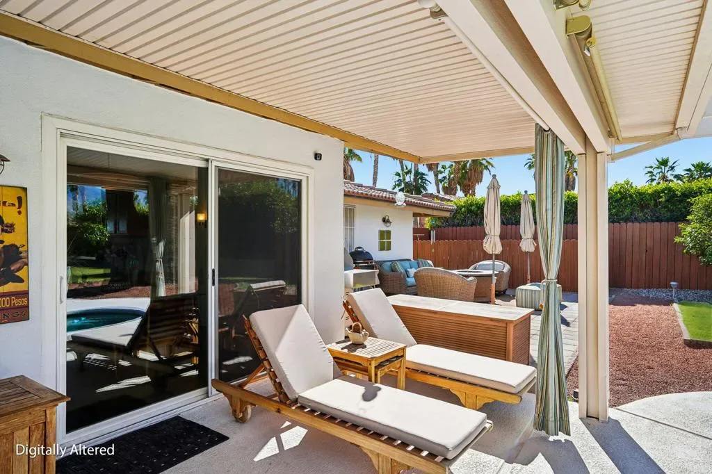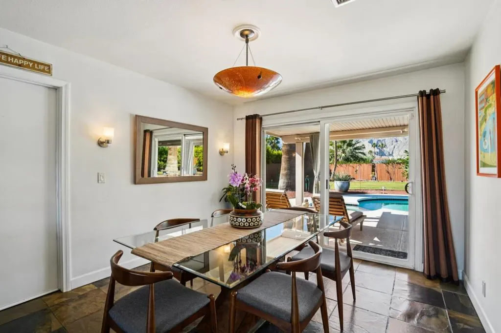 Prepared to be blown away by this expansive 17,400 sq ft lot with sweeping views including the Palm Springs Tram & Tahquitz Witch, San Jacinto mountain views & more. Not to mention, no power lines behind, and owned solar (owners haven’t had a bill since 2023)! This 3BD/2BA Palm Springs home on FEE land (you own the land) offers a rare combination of privacy, and usable outdoor space with all the location convenience that Central Palm Springs offers! Designed for true indoor-outdoor living, the backyard features a large pebble tec saltwater pool and spa, multiple conversation areas, and a unique outdoor entertainment setup with pool table and TV, ideal for relaxing or hosting. Inside, the home offers approximately 1,500+ sq ft with a well-maintained layout, vaulted beamed ceilings, and a comfortable flow between living, dining, and outdoor spaces. The kitchen includes top of the line JennAir appliances (inside and out), granite countertops, BBQ pass through window, updated cabinets, and functional workspace for everyday living or entertaining. The primary suite is thoughtfully positioned for privacy and includes direct access to outdoor areas & primary bath with updated subway tile shower. Main bath has glass block, two vanities plus pool/outdoor access. Upgraded windows contribute to interior comfort/noise reduction. Additional features include: upgraded ductwork/attic insulation, a two-car garage, low-maintenance desert landscaping, citrus trees, and Fee Land (you own the land). Located close to downtown Palm Springs, dining, shopping, and local amenities, offering convenience without sacrificing space or setting. A unique opportunity to own a property where lot size, views, and outdoor lifestyle take center stage. This is one of those properties that you know the minute you walk in it’s been well maintained! Properties offering this combination of lot size, views, and outdoor functionality are increasingly difficult to find in this area so don’t delay!