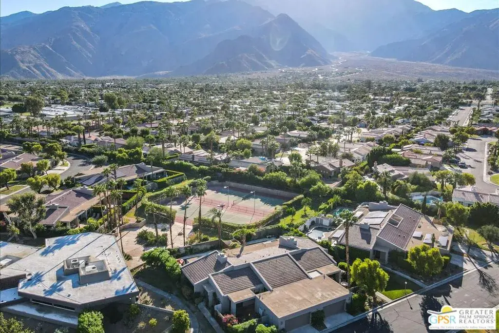 26 SOLAR OWNED PANELS. Nestled in the heart of Palm Springs, Sundance Resort is an exclusive gated community of just 60 single-level pool homes built in 1982 for members of the Dallas Cowboys. Each residence features its own private pool, spa, and walled yard, offering the ultimate in luxury, privacy, and resort living. This 2BD/2BA, 1,742 SF home sits in one of the community’s best locations, showcasing unobstructed mountain views with no power lines, abundant natural light, and a spacious two-car garage with direct access. The single-story floor plan ensures easy living with no stairs and no neighbors above or below. Homeowners enjoy access to tennis courts, a racquetball court, clubhouse, gym, etc, all surrounded by over 17 acres of landscaped greenbelts and dog parks. HOA dues include earthquake insurance (shell), roof maintenance, water, trash, landscaping, and access to all amenities. Situated on fee simple land (you own it!), Sundance allows short-term rentals with no restrictions (please verify), making it an ideal investment opportunity. Just minutes from downtown Palm Springs, residents enjoy world-class shopping, restaurants, art galleries, and entertainment while returning home to a tranquil resort retreat. Sundance Resort delivers the perfect balance of luxury, privacy, and investment potential, a rare chance to own one of Palm Springs’ most desirable private pool homes.