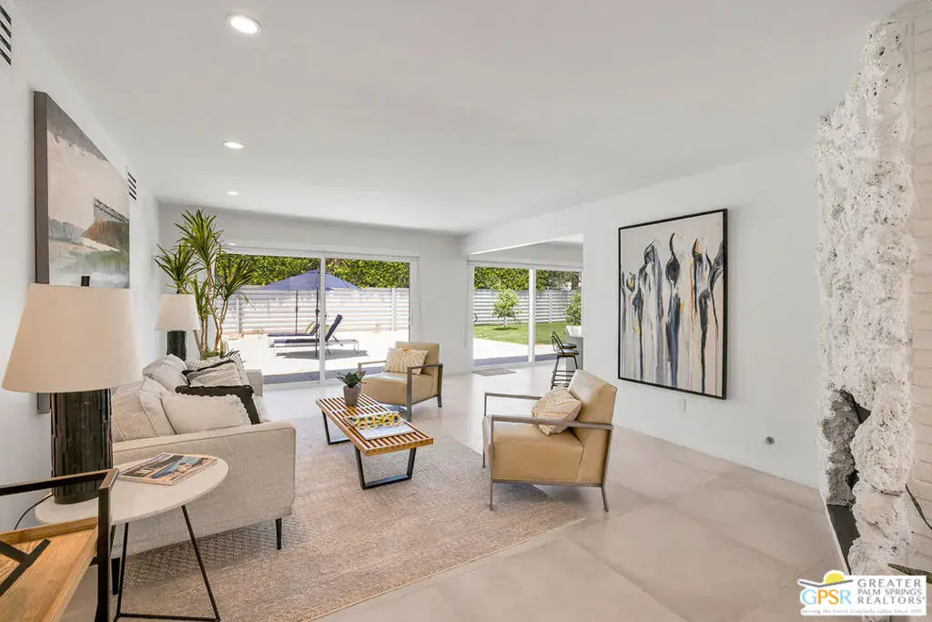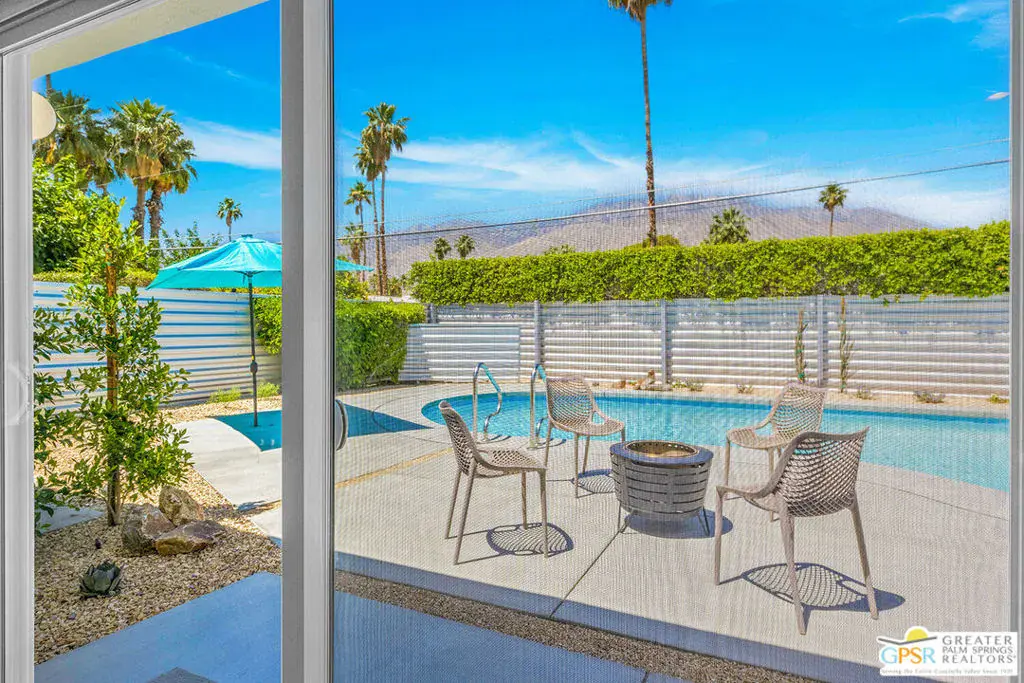 Step into this fully renovated midcentury gem nestled in the heart of Palm Springs’ coveted Sunmor neighborhood. Located on a quiet street believed to be partly developed by Julian Sifflegendary owner of the Chi Chi Lounge and the Starlite Roomthis architectural treasure features one of only two homes on the block with a striking folded-plate roofline. With 4 bedrooms and 2 bathrooms, this home seamlessly blends classic midcentury style with modern updates. The expansive open-concept living room is anchored by a stunning stone fireplace and flows effortlessly into the backyard oasis, complete with a sparkling blue pool and sweeping mountain views. Culinary enthusiasts will fall in love with the reimagined kitchen, featuring sleek quartz countertops, stainless steel appliances, and a rare indoor gas grillperfect for entertaining year-round. The spacious primary suite is your private retreat, offering a large walk-in shower with an outdoor shower and a generous walk-in closet. Three additional bedrooms provide flexible space for guests, a home office, media room, or creative studio. A newly epoxied two-car garage adds a polished touch and offers plenty of room for your prized vehicle. The oversized, professionally landscaped yard invites you to relax, entertain, or simply take in the breathtaking desert vistas. Don’t miss the opportunity to own this iconic piece of Palm Springs history. Contact the agent today for more information or to schedule your private tour.