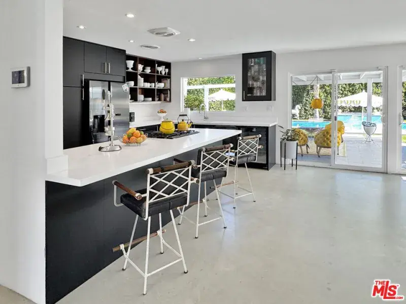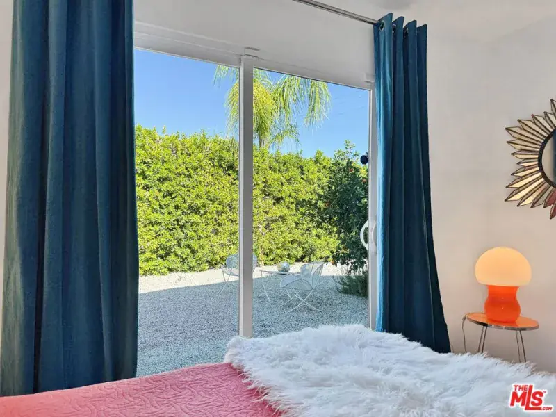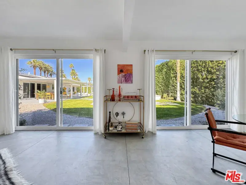 Reimagined midcentury ranch situated on a rare, jumbo-size .35-acre lot in Sunrise Park, offering quintessential Palm Springs living. This rare oversized property is discreetly tucked behind walls and hedges, exuding charm and featuring resort-style grounds with a pool, spa, detached cabana, multiple seating areas, and sweeping, wire-free mountain views. Lounge poolside while taking in views of Mt. San Jacinto by day and the aerial tram by night, or chill in the vibey cabana retreat overlooking the pool. The fully hedged property offers exceptional privacy and includes a two-car garage as well as ample space for a vintage trailer, RV, future addition, and ADU/guest house. Interiors boast a pared-down aesthetic with concrete floors and whitewashed walls, providing a neutral backdrop for art and furnishings. The bespoke kitchen offers generous storage, a gas range, quartz countertops, and a picture window overlooking the pool and outdoor lounge and dining areas. All rooms open directly to the pool and gardens, including the primary bedroom with its ensuite bath and dual wardrobes. Two guest bedrooms share a hall bath, with one bedroom featuring pocket-door access, creating a junior primary suite. Ideally located between the airport and downtown Palm Springs, the home is walkable to Sunrise Park, the city’s swim center, library, sports fields, PS Cultural Center/Camelot Theatre, weekly farmers market, and numerous shops and restaurants. Note that the Sunrise Park neighborhood currently allows full short-term vacation rental permits. Additional upgrades include a transferable solar lease with a fixed, low monthly electricity payment, newer HVAC system, mini-split in the primary bedroom, new water heater, new exterior paint, and a recoated foam roof with warranty. The rear property line spans approximately 130 feet with no neighboring properties behind. Whether entertaining on a grand or intimate scale, this rare and private property is designed for memorable desert living. You own the land and there are no HOA fees.