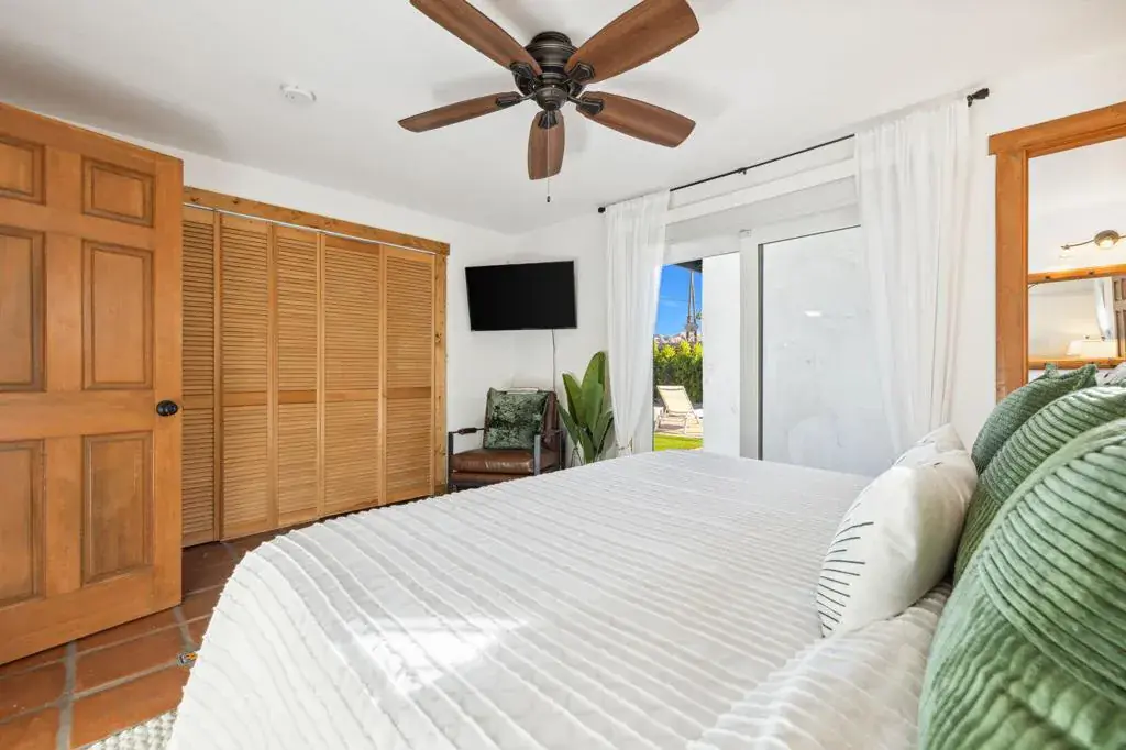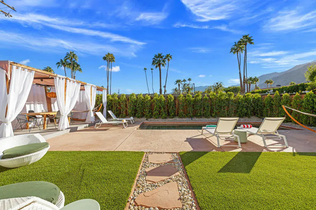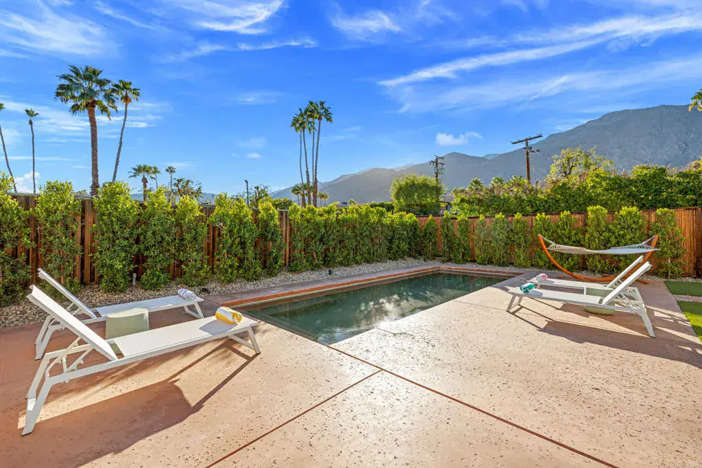 Rich in character and designed for effortless desert living, this Spanish ranch style home offers a rare blend of charm, comfort, and privacy in the heart of Palm Springs. Whether enjoyed part-time or full-time, it feels like home the moment you step inside.The backyard is truly special, sun drenched and private, with a sparkling pool, chic cabana for al fresco dining or sunset cocktails, and dramatic mountain views that define the Palm Springs lifestyle. It’s your own personal resort, ideal for entertaining, relaxing, and soaking up the sun.Inside, warmth and character meet a relaxed high desert aesthetic. A cozy fireplace anchors the living room, while the kitchen is designed for easy connection and effortless entertaining. The primary suite is a true retreat, featuring beautiful wood closet doors and direct access to a jetted hot tub just outside. Two stylish guest bedrooms and a vibrant guest bath add comfort and personality.The lot offers exceptional versatility, with a welcoming front garden, expansive pool and entertaining area, a west-side yard perfect for installing a bocce ball or planting a citrus grove, and a large east-side bonus yard ideal for building a casita/ADU, a pickle ball court, or your own custom outdoor escape, you decide.Located in the highly desirable Tahquitz River Estates neighborhood, this home is just a short walk to Townie Bagels and downtown Palm Springs. As a bonus, it is eligible for a City of Palm Springs short-term rental permit, offering the opportunity to Airbnb and offset ownership costs. Private, character-filled, and rich with outdoor space, located out of the wind and within walking distance of down town Palm Springs, this is an increasingly rare find i.Schedule your private showing today and experience this desert oasis for yourself.