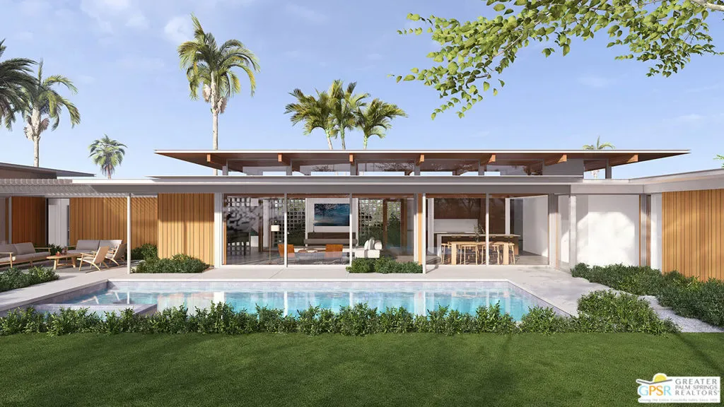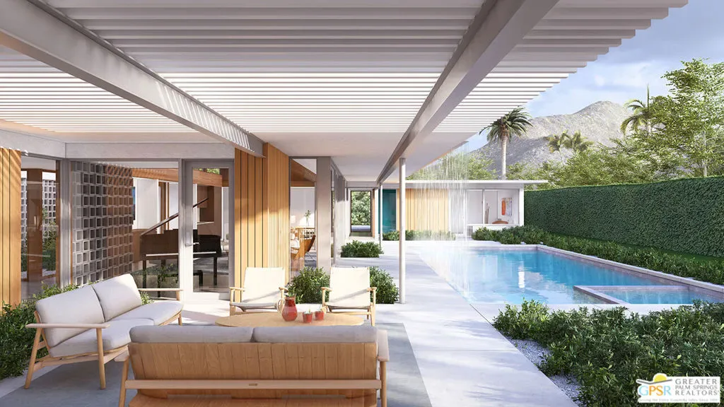 A ready-to-build, permitted homesite in Historic Tennis Club, the final, never-developed piece of the legendary Bourne Estate. One-third of an acre on Fee Simple Land with breathtaking mountain views in a coveted neighborhood of architecturally significant homes. The price of the listing is for the Lot Only. Photos of the home are artist renderings only. Site-specific custom architectural plans and a comprehensive building component package for this lot are available for purchase from Turkel Design: An elegant California Modern home; 3BR + Den, 3.5 Bath, 3280 sq. feet, as shown in these renderings. Note the amazing waterfall from the roof to the pool. The Turkel Design prefab process brings predictability to the cost, timeline, and quality of custom architecture. Building components are crafted with premium materials in a climate-controlled facility, then delivered to the site for precision assembly and finishing. Call listing agent for more details.