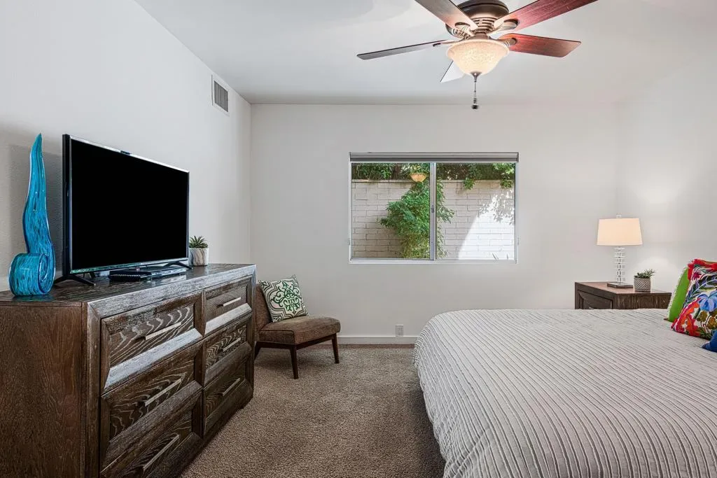 Your Private Corner of Paradise at ”The 500 West”Discover the most exclusive setting in this iconic Herbert Burns mid-century complex – a secluded corner unit where mountain vistas and downtown energy meet. From your sheltered patio, watch the San Jacinto mountains transform with the light while staying tucked away from it all.This ground-level floor plan offers effortless living with two separated primary suites ensuring maximum privacy. The generous kitchen w/washer & dryer in unit provides plenty of space to create, whether you’re entertaining or keeping it casual.Step outside to your private patio oasis, then just steps further to the sparkling pool and spa. When you’re ready, downtown Palm Springs’ best dining, galleries, and nightlife are all within an easy stroll. Hiking and biking trails beckon outdoor adventurers.”The 500 West” delivers the complete Palm Springs lifestyle: architectural pedigree, unbeatable location, and a community that gets it right. This corner position with single-story convenience? It’s the one.30-day minimum vacation rental policy