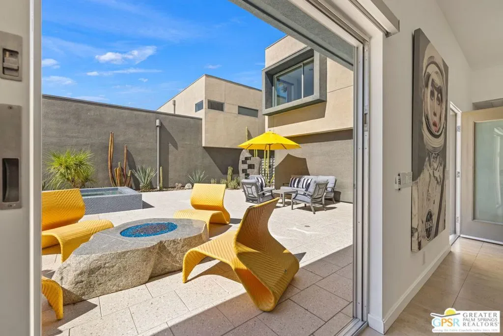 Morrison MAGIC in full effect and being sold turnkey FURNISHED. Modern design, exceptional outdoor living, and a dramatic San Jacinto Mountain backdrop all come together at this ultra private residence in The Morrison. The vibe is crisp, clean, and effortless from the moment you enter, with indoor outdoor flow that places the pool and mountain views front and center. The pool and spa were refreshed in 2026 with gorgeous blue tile that makes a striking first impression, delivering instant wow factor alongside the spa to pool waterfall, generous sunning areas, and a modern stone fire pit that adds another focal point. All of it is framed by lush desert landscaping and complete privacy, creating an outdoor environment made for lingering, lounging, and entertaining in style. Inside, the modern aesthetic continues with tall ceilings, sleek finishes, and an easy open layout. The sought after Plan 3 design offers three bedrooms and three baths including a convenient first level bedroom and two ensuite bedrooms upstairs. Quality upgrades are found throughout, enhancing both style and function. Be it full time or seasonal, there is so much to love. Fee Land, you own it. The Morrison is gated, beautifully modern, and moments from both downtown and uptown. A rare combination of design, setting, and pure desert magic.