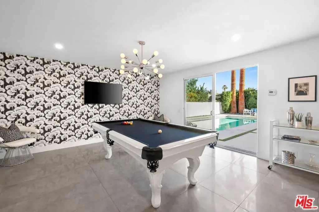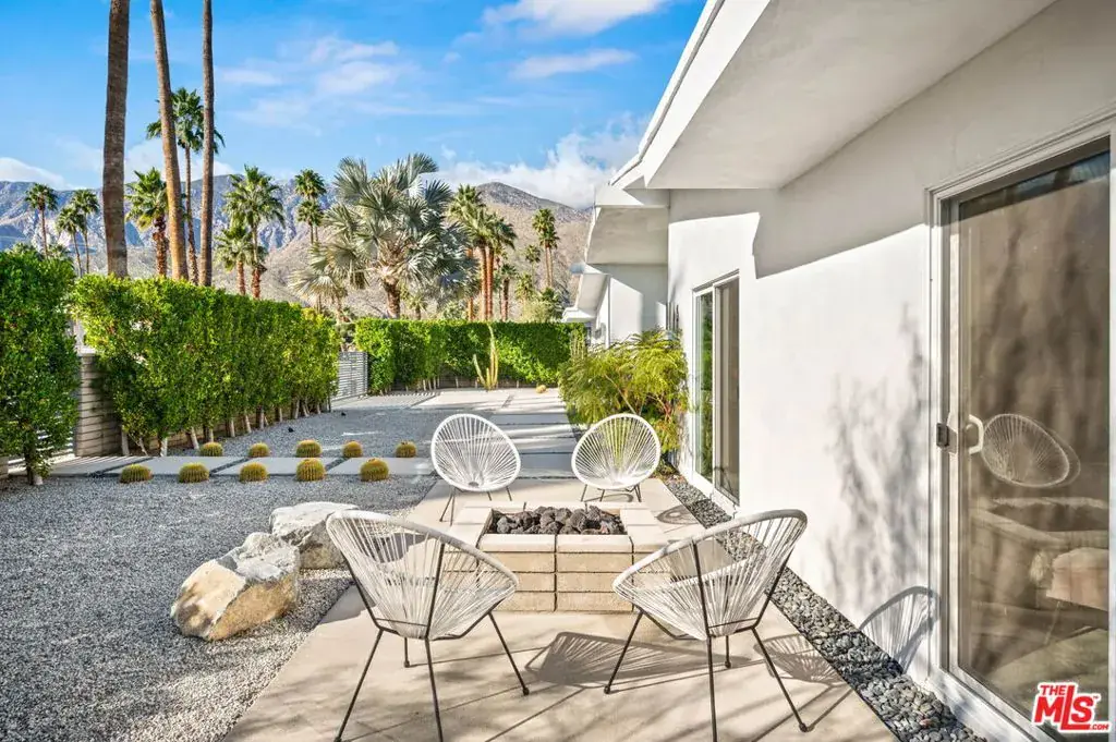 Welcome to 1160 E Marion Way, nestled in the coveted neighborhood of Twin Palms. One of Palm Springs’ most celebrated midcentury communities, prized for its architectural pedigree, resort-like ambiance, and convenient location to downtown. Set behind walls and gates for exceptional privacy, this reimagined and remodeled in 2022, 4-bedroom/3-bathroom residence offers approximately 2,824 sq ft of bright, open living with soaring 12ft ceilings, generous room proportions, and a showstopping floor-to-ceiling fireplace. The chef’s kitchen is a true centerpiece, including Quartz waterfall-edge countertops and striking tilework. Designed for effortless indoor/outdoor living, the home is wrapped in glass with sliding doors on multiple sides, and every bedroom opens directly to outdoor spaces. A grand entry, private courtyard with a fire pit, and stunning mountain views set a memorable tone upon arrival. At the rear of the residence, a private desert oasis awaits: a sparkling saltwater Pebble-Tec pool, outdoor shower, secondary fire pit lounge, and plenty of space to relax or entertain, all framed by views of Mt. San Jacinto. The spacious primary suite offers dual walk-in closets and a spa-inspired bath with soaking tub, walk-in shower, and dual vanities. Key features include a billiards room, large porcelain tile throughout, upgraded plumbing and Herman Miller light fixtures, a dual-zone HVAC system, an updated electrical panel, wired-in-wall speakers, whole-house Pelican water softening and filtration, mature landscaping design, a full-size 2-car garage, 57 owned solar panels, and much more. Please email for a full list. With a strong history as a successful vacation rental, this property offers outstanding flexibility as a full-time residence, seasonal escape, or income-producing investment. A true Palm Springs sanctuary in one of the city’s most sought-after neighborhoods, offering the very best of desert Southern California living. Property available turnkey with furniture/furnishings available outside of escrow.