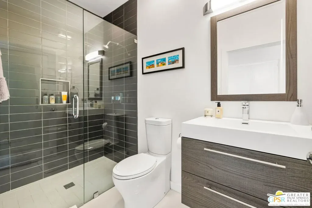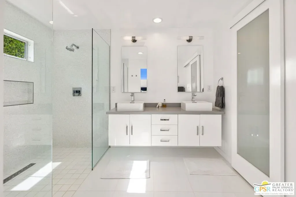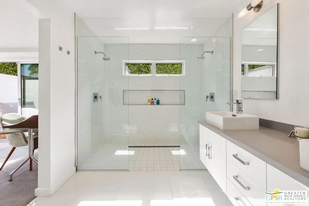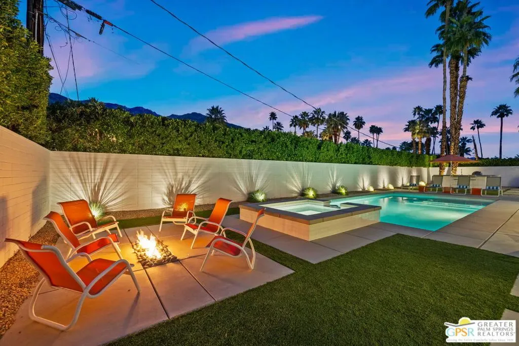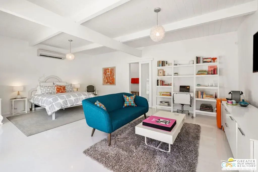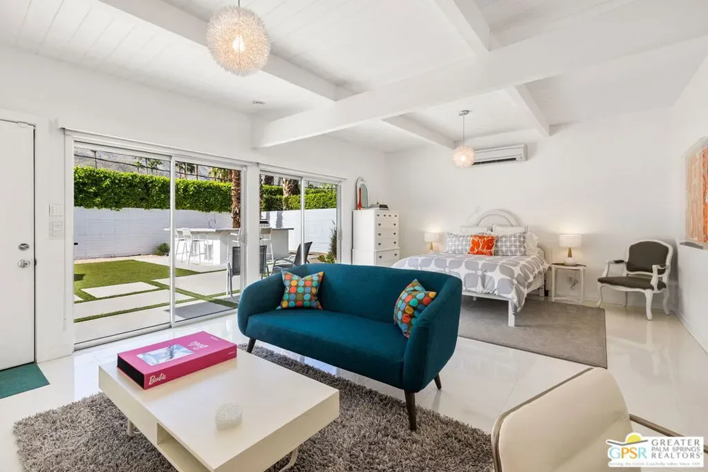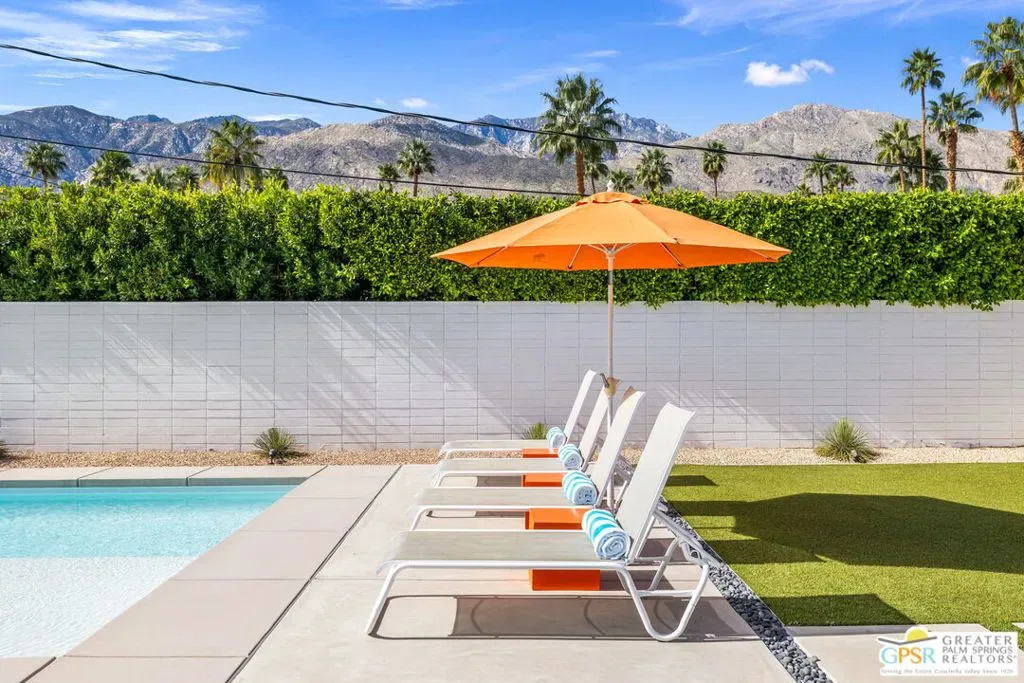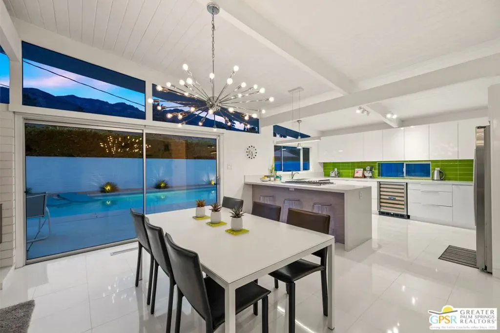 A rare convergence of architectural significance, exceptional condition, and prime location, this iconic William Krisel-designed, Alexander-built home is a standout offering in the highly coveted Twin Palms neighborhood of South Palm Springs. Defined by its classic butterfly roofline, this home embodies the very essence of timeless Palm Springs Mid-Century Modernism updated with modern-day comfort and conveniences. As Krisel intended, the home features a thoughtfully designed and open floor plan, expansive clerestory windows capturing stunning, west-facing, mountain views and filling the home with natural light, tongue and groove ceilings throughout, and a gas fireplace. This residence exudes pride of ownership, thoughtfully renovated with a deep respect for the home’s original design while adding refined, contemporary updates such as porcelain tile flooring, built-in closet cabinetry, renovated bathrooms, and a modernized kitchen featuring custom cabinetry, stainless steel Bosch appliances, a built-in wine refrigerator, quartz countertops, and custom back splash with undercabinet pass thru to the covered outdoor dining area. In addition to the main house, a detached casita offers the flexibility of a spacious fourth bedroom which provides privacy and serenity for guests or acts as a detached workspace or retreat. The enclosed, secluded and secure backyard provides a resort-style sanctuary with an elevated spa spilling into the pool (replastered 2025), water feature, breeze brick wall, gas firepit, outdoor shower, built-in BBQ with counter and sink, private patio off the primary suite, and a combination of lush succulent landscaping and astroturf, all designed for effortless, conservation-friendly, desert living. Additional features include owned solar panels with Tesla Powerwall (home battery), upgraded electrical panel, new foam roof insulation (2018), Ring security system, four outdoor cameras, and covered garage. Exceptional curb appeal with a half-moon driveway on one of the neighborhood’s most beautiful streets. This is a rare opportunity to own a true architectural gem and updated classic. A home that effortlessly balances history, design, comfort, and lifestyle resulting in something that is truly timeless, refined, and unmistakably Palm Springs.