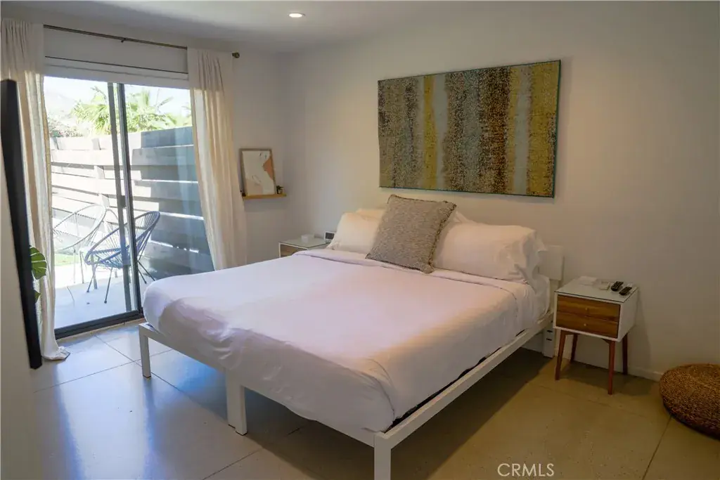 Iconic Palm Springs–style living with breathtaking, unobstructed mountain views—and a proven, highly successful short-term rental that comes furnished. This striking 3-bedroom, 2-bath modern desert retreat is thoughtfully designed to blur the line between indoor and outdoor living, making it equally compelling as a turnkey investment or effortless second home. Polished concrete floors anchor the home’s clean architectural lines, while expansive sightlines showcase dramatic mountain views from nearly every space.