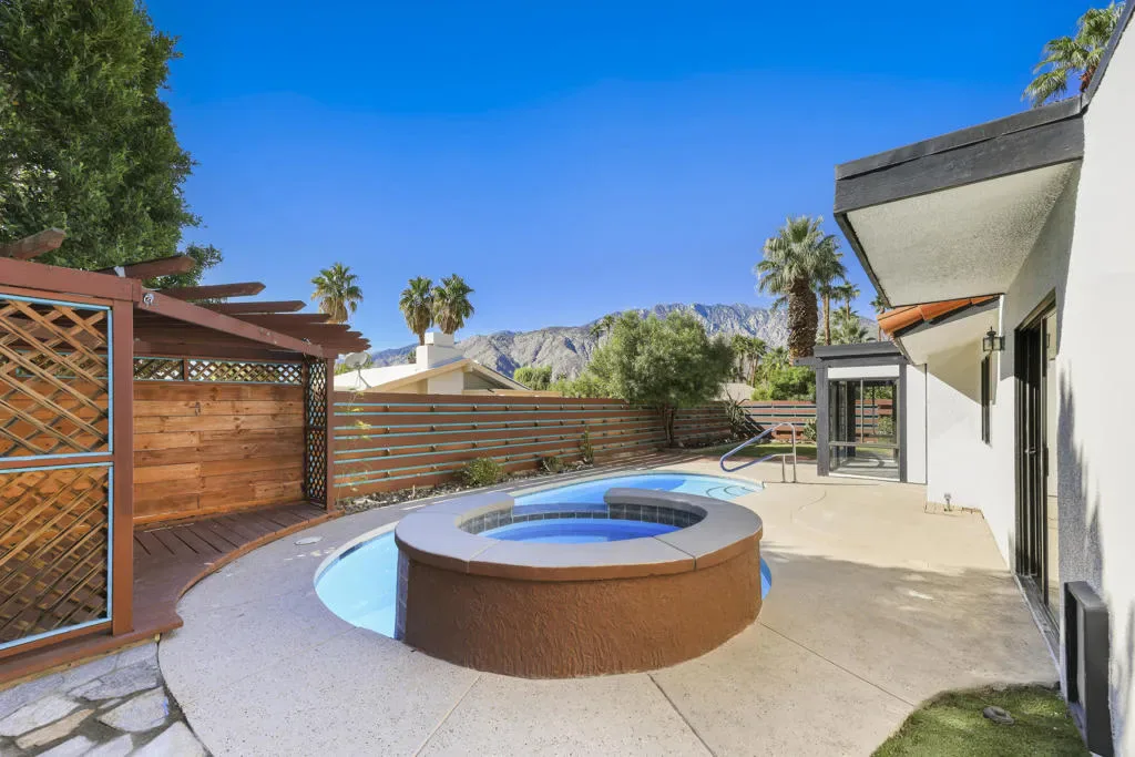 Located at the end of a quiet Cul-de-sac, This Picturesque 3 bedroom – 2 bath with 1-car attached garage has a park-like asthetic as you approach. Enjoy Mountain Views from you Updated Private Pool and Elevated Spa in the the serence backyard with enclosed sunroom. Inside you will find vaulted ceilings & can enjoy open concept living. Primary bedroom has separate and direct access to the backyard. Newer HVAC, well maintained and ready to move-in to! A Great Home with a Great Price- Less than 10 minutes to downtown Palm Springs. Be sure to check this one out…