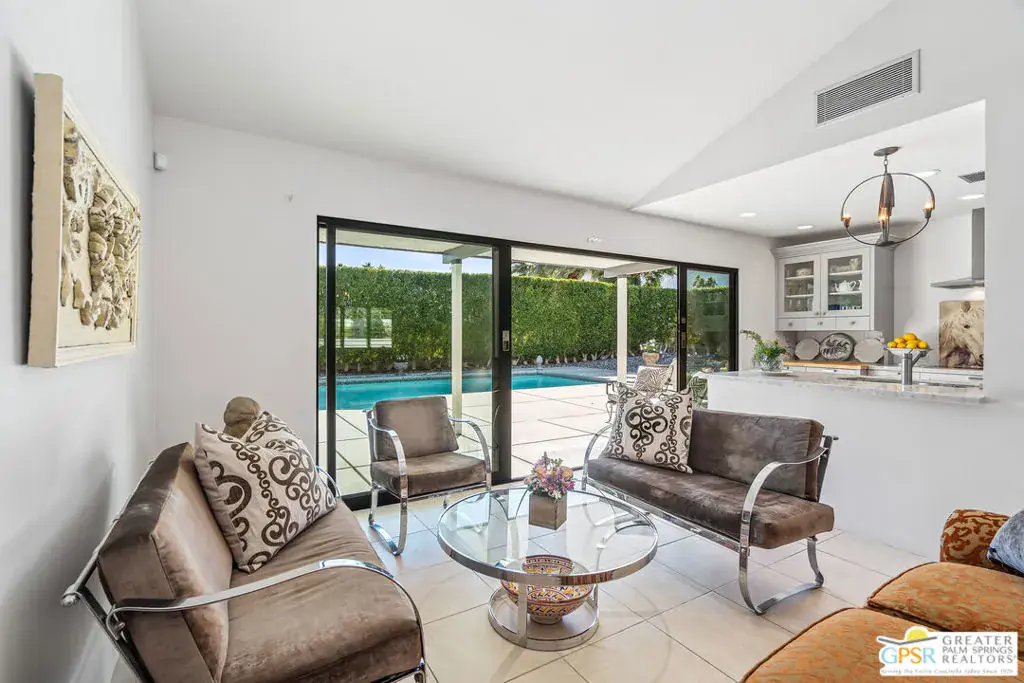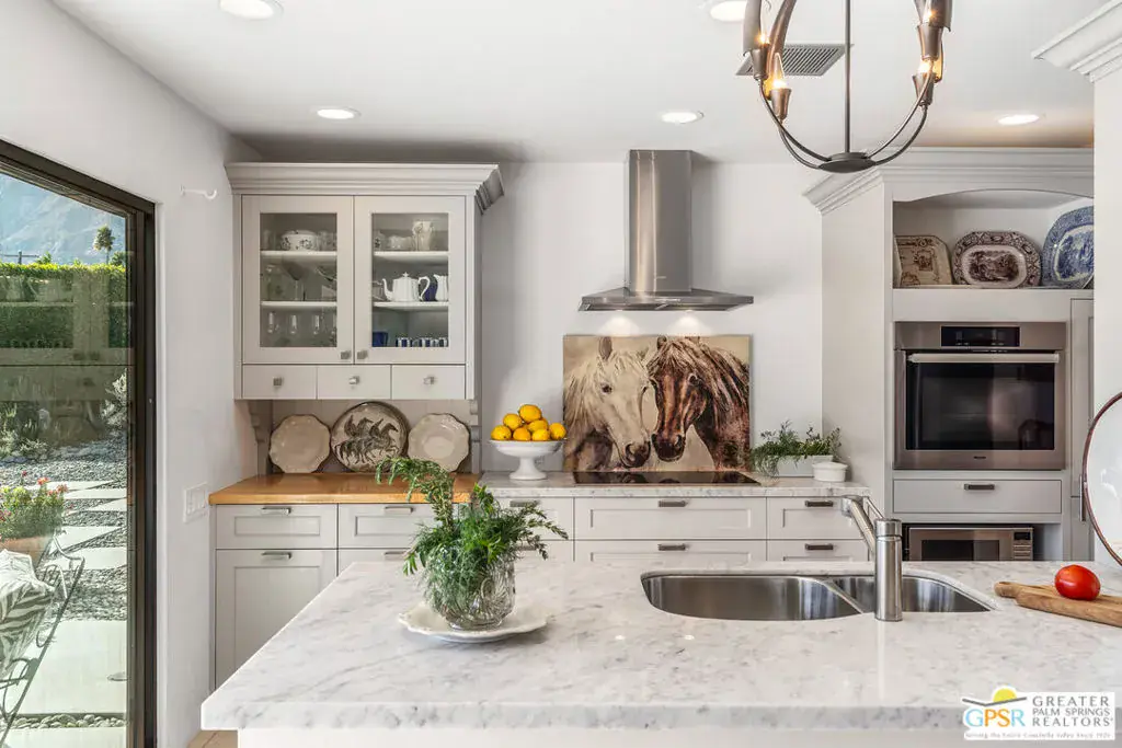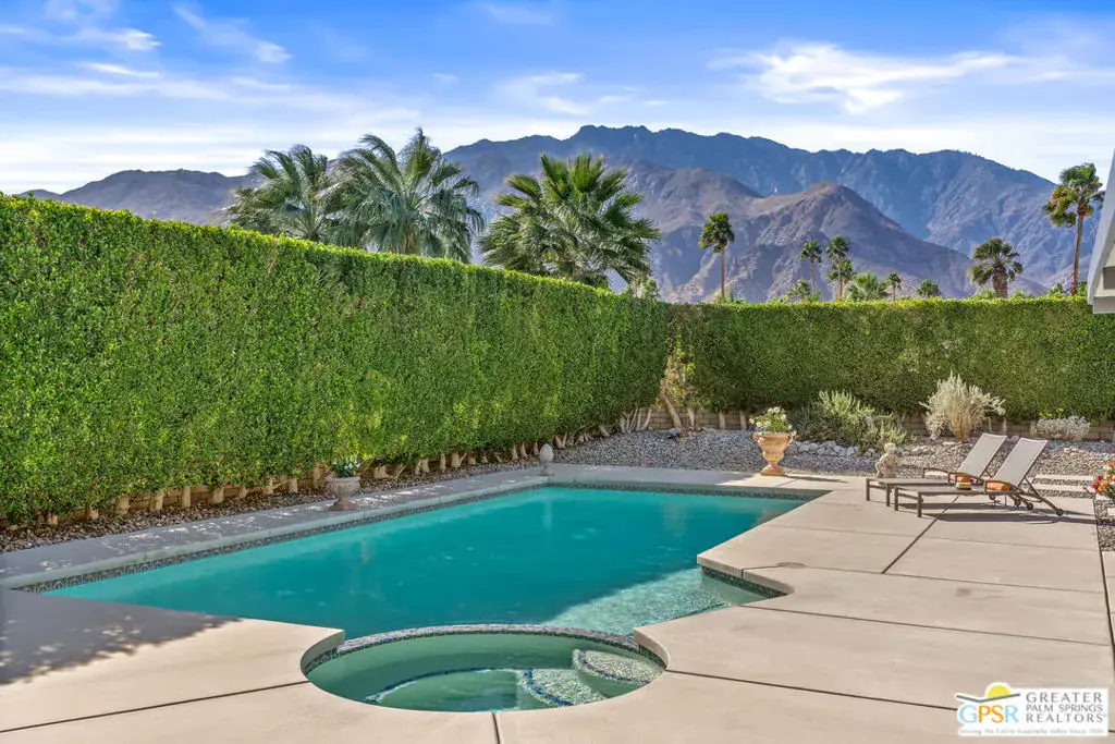 Welcome to 805 El Cid, a stunning oasis nestled on a very quiet street in the heart of Palm Springs, CA. This extensively renovated home offers a perfect blend of modern elegance and serene desert living. Spanning 1,462 square feet, this residence features three spacious bedrooms and two beautifully updated bathrooms, providing ample space for relaxation and comfort. The heart of the home is the custom kitchen, equipped with top-of-the-line appliances and meticulously crafted cabinets, making it a culinary enthusiast’s dream. Large Fleetwood sliding glass doors have been thoughtfully replaced, inviting abundant natural light and providing the indoor/outdoor living factor. Step outside to discover your private sanctuary on a generous 10,019-square-foot lot. The south facing manicured backyard is an entertainer’s paradise, complete with a sparkling pool and spa, perfect for unwinding under the sun and enjoying spectacular mountain views. The private outdoor spaces offers tranquility and privacy, creating an ideal escape from the hustle and bustle of everyday life. A 2 car insulated garage provides parking and extra storage. This home is truly ready to enjoy, offering a unique opportunity to experience the best of Palm Springs living. Lovingly renovated, maintained and gently lived in by part time owners, this home has never been used as rental so it’s in immaculate condition. Don’t miss the chance to make 805 El Cid your own personal retreat.