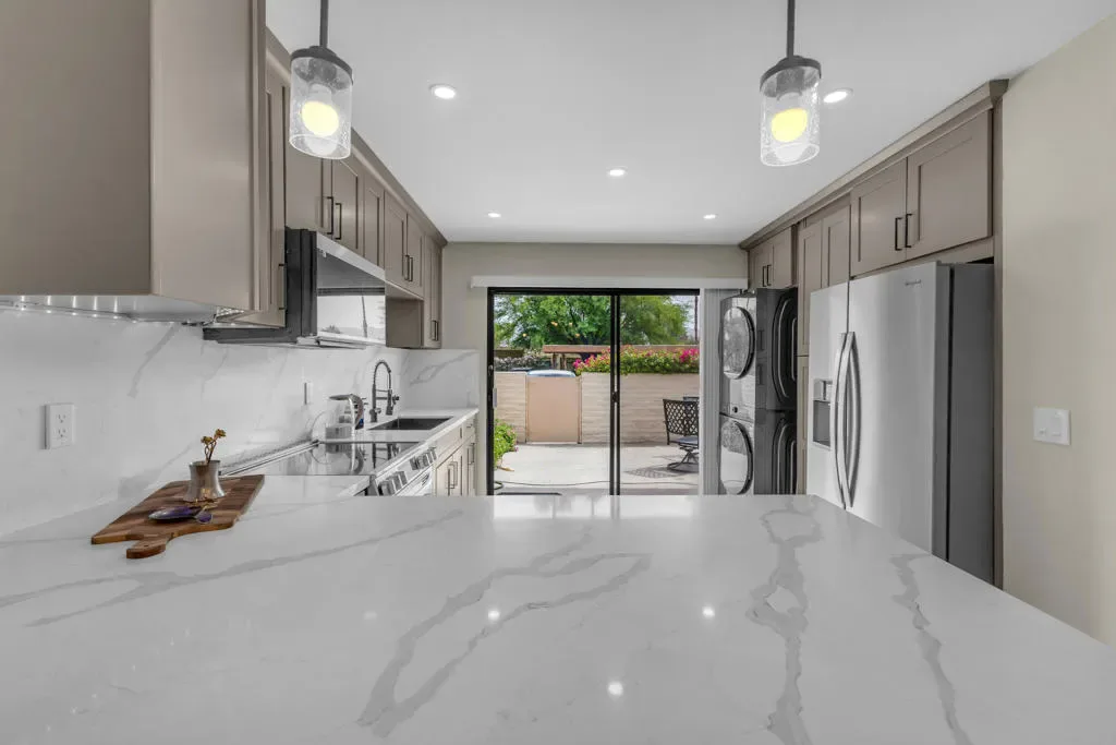 Welcome to this adorable two-bedroom, two-bathroom corner unit condo in Palm Springs. This home features beautiful upgrades throughout, including a remodeled kitchen and updated bathrooms, along with the convenience of a full-size washer and dryer. The private patio offers a perfect space to relax and enjoy the desert lifestyle.Ideally located within the community, this condo is just steps from the swimming pools, tennis courts, and pickleball, providing resort-style amenities right outside your door. The neighborhood is well-maintained and offers a welcoming atmosphere, all while being just minutes from downtown Palm Springs and Rancho Mirage, where you will find dining, shopping, and entertainment.Whether you are searching for a vacation getaway or a full-time residence, this property offers comfort, convenience, and an ideal location. Schedule your private showing today and come experience all that this home has to offer.
