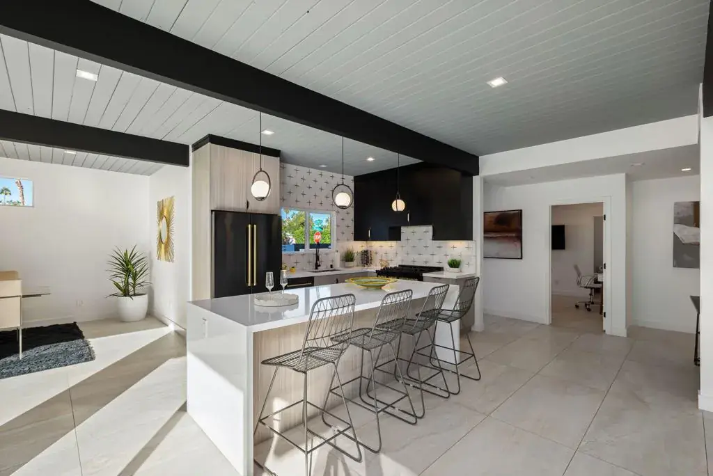Vista Las Palmas Dream Home – Fabulous Mid-Century Modern Retreat! ✨Perfectly positioned at the point where Vista Las Palmas meets Old Las Palmas–two of Palm Springs’ most iconic and storied neighborhoods–this exceptional Mid-Century Modern residence delivers the ultimate blend of architectural pedigree, modern luxury, and resort-caliber outdoor living. With downtown just moments away and the majestic San Jacinto Mountains towering dramatically behind, the setting is truly unmatched.Step inside to an open, sun-soaked floor plan boasting 4 bedrooms, 4 bathrooms, and 2,284 sq ft of beautifully curated living space, all situated on a generous 10,019 sq ft lot.The gourmet chef’s kitchen impresses with custom cabinetry, a spacious center island, and premium appliances–perfect for intimate meals or lively gatherings. The living room captures classic mid-century vibes with exposed wood-beam ceilings, a block-style gas fireplace, and walls of glass that frame the sparkling pool and sweeping mountain views. A formal dining area provides an elegant space for entertaining.The primary ensuite enjoys its own private wing, complete with serene pool and mountain vistas. A second ensuite bedroom–tucked on the opposite side of the home–features a private patio for moments of quiet retreat. Two additional guest rooms (one ensuite) line the central hallway for comfortable guest accommodations.Step outside to an entertainer’s paradise: multiple lounging and dining areas, a glimmering pool, and an outdoor shower. Whether sunbathing, stargazing, or hosting weekend gatherings, this backyard is designed for pure Palm Springs enjoyment.Located just steps from fashionable Uptown Palm Springs, this standout property seamlessly blends iconic mid-century charm with modern comfort–delivering resort-style living in one of the city’s most sought-after neighborhoods.A true Palm Springs gem–bold, beautiful, and unforgettable. Let this extraordinary home capture your imagination.
