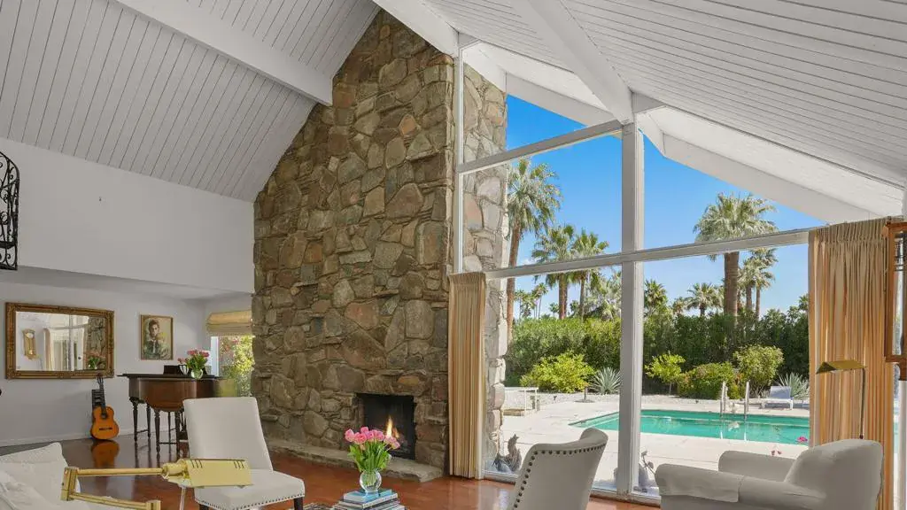 1958 Charles Du Bois Architectural Masterpiece- A rare and sought-after A-Frame ‘Swiss Miss’ home in Vista Las Palmas, one of only 15 remaining and the only one featuring an architecturally matching guesthouse, originally designed as an art studio.This iconic mid-century modern retreat sits on an expansive lot, offering breathtaking views of the San Jacinto Mountains and open desert skies. Floor-to-ceiling glass walls seamlessly blend indoor and outdoor living, inviting natural light and showcasing the home’s dramatic lines. A pool and large Private yard** create an ideal setting for relaxation and entertaining.Thoughtfully preserved original details and modern amenities, including solar energy, enhance this architectural gem’s appeal. An unparalleled opportunity to own a piece of Palm Springs history.