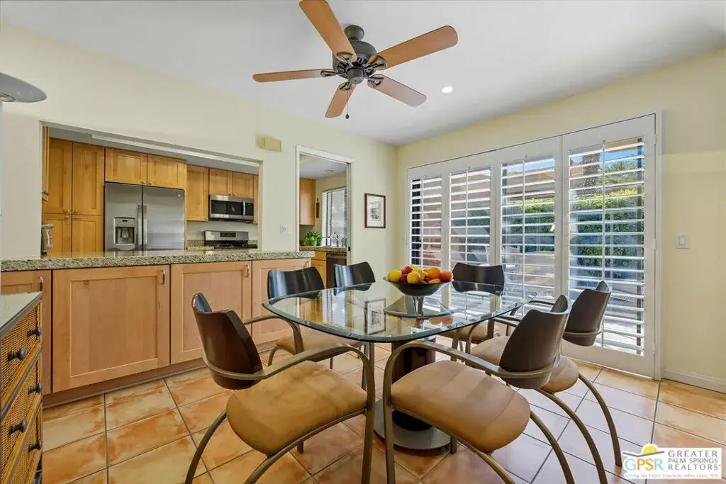 Welcome to highly sought-after Waverly Park! Perfectly situated just minutes from golf, hiking trails, shopping, and vibrant dining, this beautifully updated 2-bedroom, 2-bath residence blends modern comfort with timeless Palm Springs charm. Tucked away in a quiet, secluded setting, the home offers seamless indoor-outdoor living from the open dining and living areas to a private patio with peekaboo mountain views. The rustic ceramic tile flooring continues from indoors to out, creating a natural, cohesive flow. Plantation shutters and a gas brick fireplace enhance the home’s warm, relaxed atmosphere. The thoughtfully renovated kitchen features granite countertops and abundant storage, while both bathrooms and the wet bar have been stylishly updated. A private two-car garage provides direct access to the kitchen for added convenience. Waverly Park is a gated community offering three pools and spas, along with tennis and pickleball courts. HOA dues include roof maintenance, water, trash, and landscaping. Home is vacant and furniture removed.