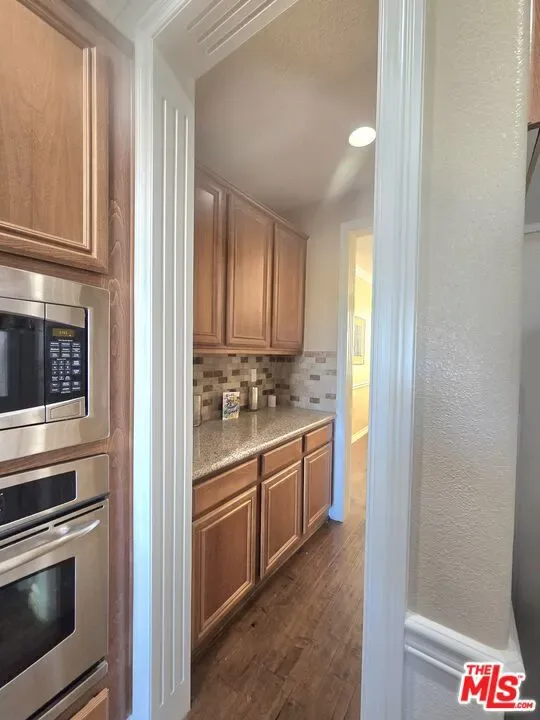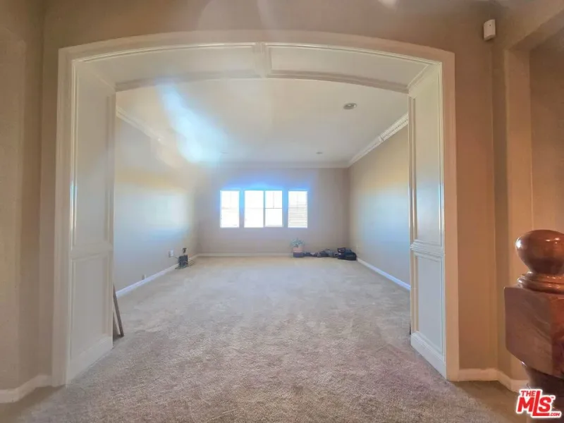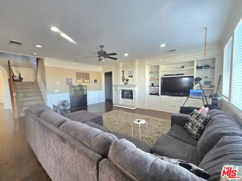 Stunning 5-bedroom, 4-bathroom, 2-story single-family home in the highly desirable Anaverde Community! Boasting 3,499 sq ft of living space on an 8,738 sq ft lot, this home features a thoughtfully designed floor plan with an open first level, perfect for entertaining and family living. The main floor includes a formal living/Dining room, spacious family room w/a recessed entertainment center and traditional paneled fireplace w/granite accents,1st-level bdrm and full bath, ideal for guests or multi-generational living. Add’l 1st-floor touches include eco-friendly bamboo flooring throughout & a built-in linen cabinet for added storage. Elegant, custom wood panel mouldings and arches, recessed lighting, and 2” white corded blinds add timeless style throughout the entire home. The gourmet kitchen boasts earth-tone granite countertops & backsplash, a large island w/bar seating, walk-in pantry, gas rangetop, wall oven & microwave, dishwasher, and a convenient built-in work desk. Upstairs, enjoy an expansive loft/bonus room, ideal for a 2nd living space, office, game room, or home theater. The stairway & upper level rooms offers plush cut-pile carpeting, mirrored closet doors in all non-primary bedrooms, ceramic tile bathroom flooring, and an en-suite bedroom w/private bath. The luxurious master features a sitting room, large walk-in closet, and a spa-inspired bathroom complete w/dual vanity sinks, a makeup station, an oversized tiled drop-in tub, and separate shower. The upstairs laundry room includes built-in cabinetry and utility sink. The 3-car tandem garage includes a workbench, closets, cabinetry, and a window w/blinds. Low-maintenance desert landscaping graces the front & backyard, which include a curved concrete patio and dog kennel, all secured w/ block wall and wrought iron fencing. Adjacent to the Palmdale Aqueduct, enjoy access to a 1/2-mile walking/running trail & panoramic valley views. Conveniently located near schools, freeway and a Park & Ride. This home will not last, schedule your showing to see inside this beautiful home.