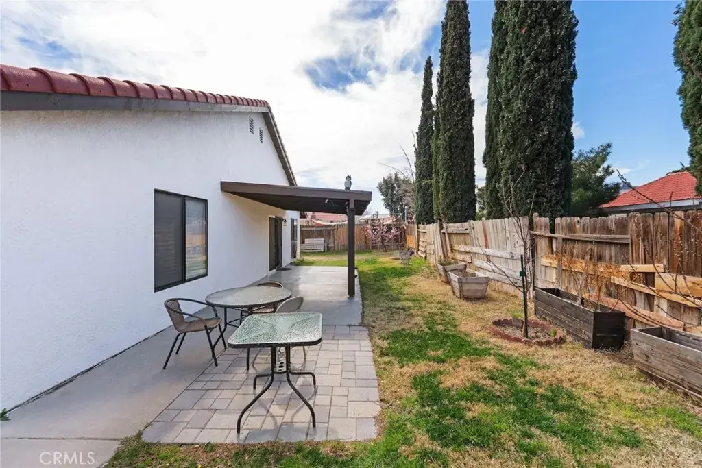 Out back, the yard is set up for real outdoor living. A covered pergola patio with pavers creates a defined space for dining or relaxing, while the wood-fenced yard offers privacy and room to spread out. A concrete side yard runs the full length of the property, adding additional usable space.