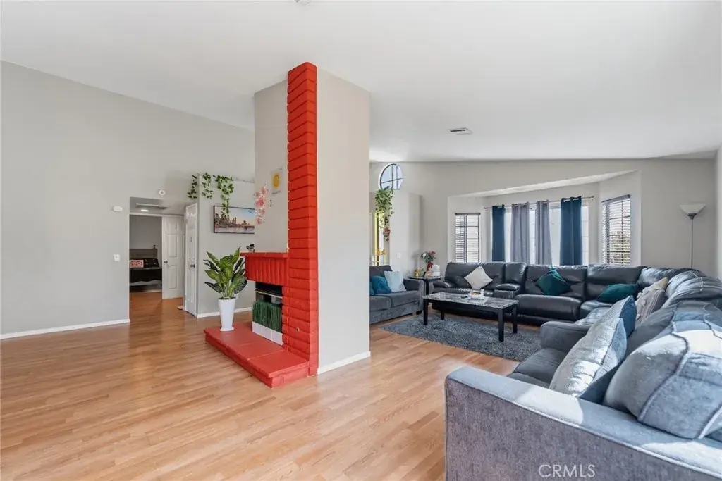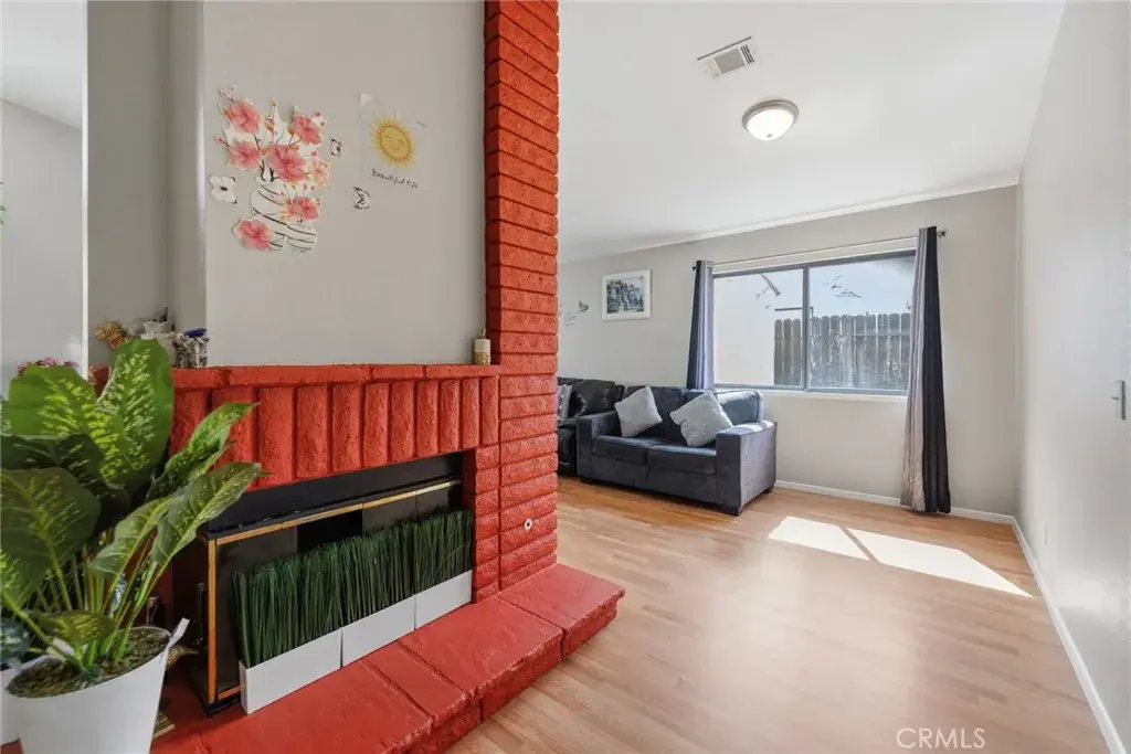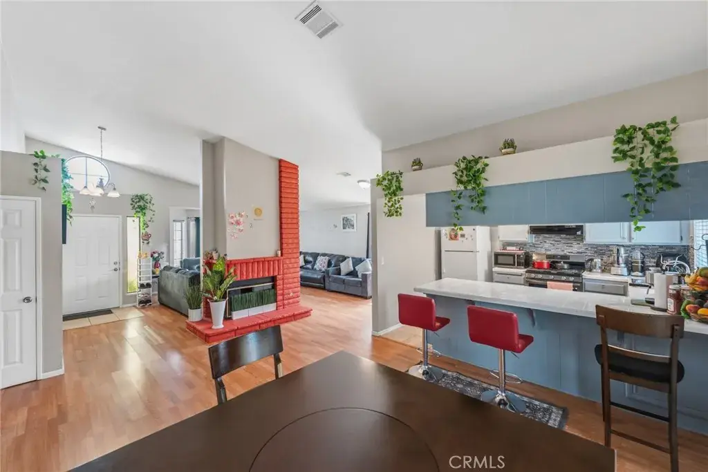 Vaulted ceilings and a floor-to-ceiling brick fireplace set the tone the moment you step through the front door of this 3-bedroom, 2-bath single-family home on Dawson Drive. The living room is generous in scale, filled with natural light, and anchored by that statement fireplace, the kind of architectural detail that gives a home real character.