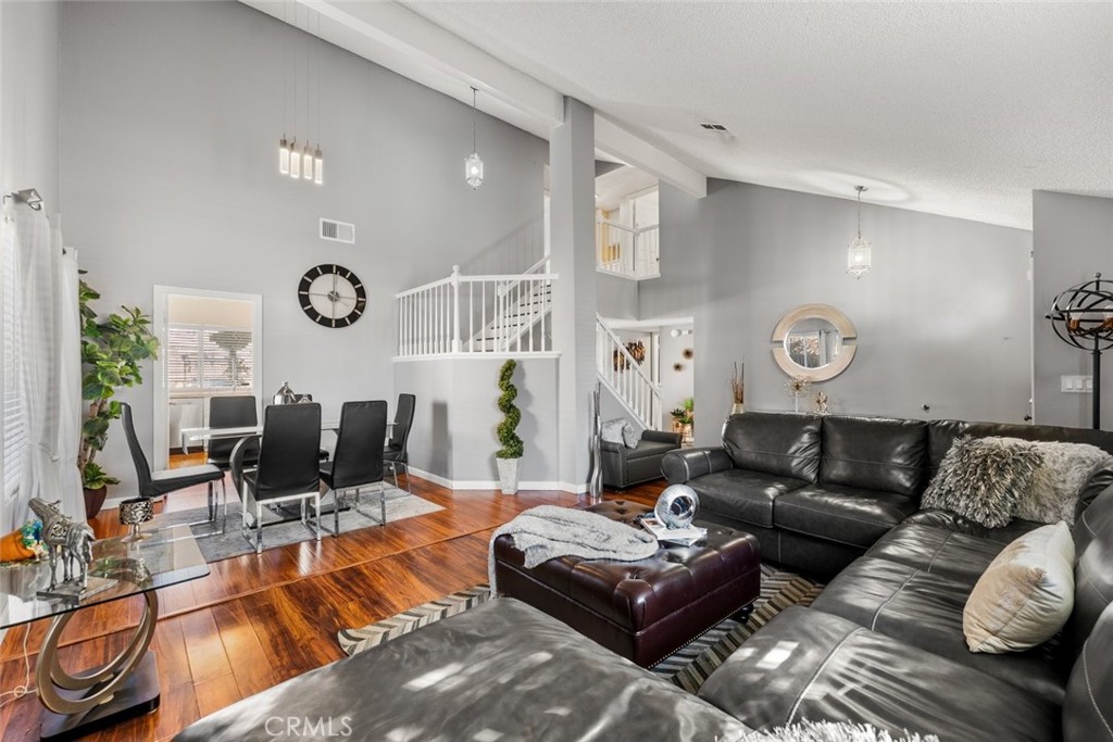 Beautiful two-story single-family home located in Palmdale offering 3 bedrooms, 2 bathrooms, and approximately 1,752 SqFt of living space. This well-maintained residence features an open floor plan complemented by high ceilings, recessed lighting, and abundant natural light that enhances the spacious living areas.