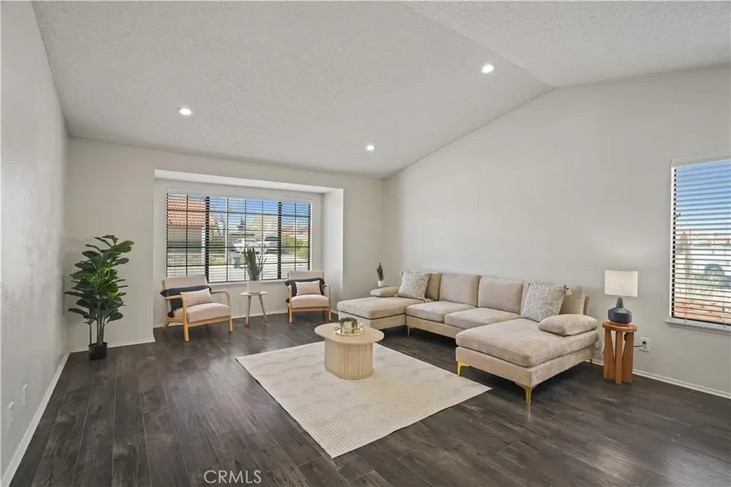 Great opportunity to purchase a single-story, single-family home, with no HOA and no Mello Roos tax bonds! This beautiful home features: an open floor plan with the living room and the dining room in one open space. A kitchen that opens to the family room with cozy fireplace. A primary suite bedroom and bathroom, the bathroom features a dual vanity and sinks, and a privacy door leading to the shower/tub combo, and a walk-in closet for great storage space. There is no carpet, only laminate flooring and tile flooring. The kitchen features granite countertops, stainless steel appliances and sink, and white cabinetry. Bathrooms have been improved with granite counters, white shaker cabinets, and stylish mirrors, and floor to ceiling tiles in the guest. Throughout the house you’ll notice the ceilings have recessed lighting and it provides excellent lighting throughout. The laundry area is conveniently located inside the house, adjacent to the 2 car garage with direct access to the house. In the backyard you’ll notice a patio cover, and a good size yard that can potentially fit a swimming pool or an ADU (buyer to verify). Please be aware that some of the photos have been virtually enhanced by AI marked with a “star” on the bottom right corner, click on the photo description to read the details, and those photos are followed by the actual real life view photos.