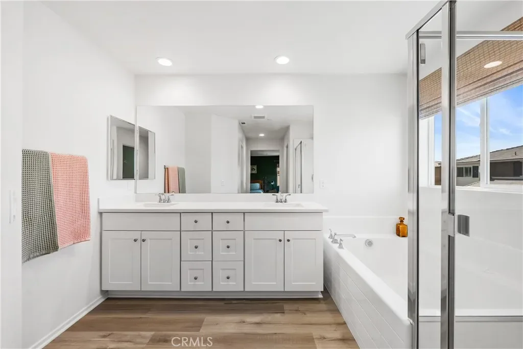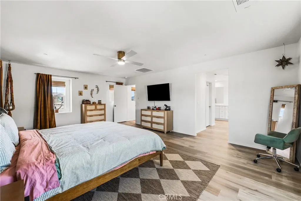 Upstairs, the loft/second living space provides flexible additional space, ideal as a fifth bedroom or secondary living area, along with another full bathroom. The primary suite is a private retreat, filled with natural light, featuring a spa-inspired bathroom with dual vanities, walk-in shower, and generous walk-in closet.