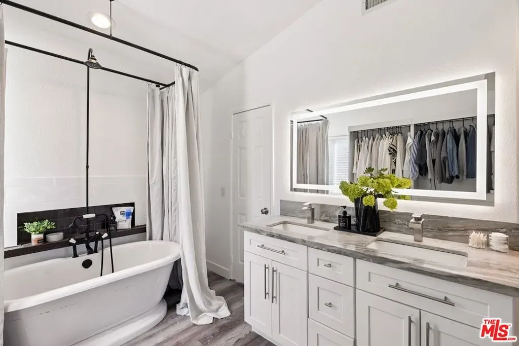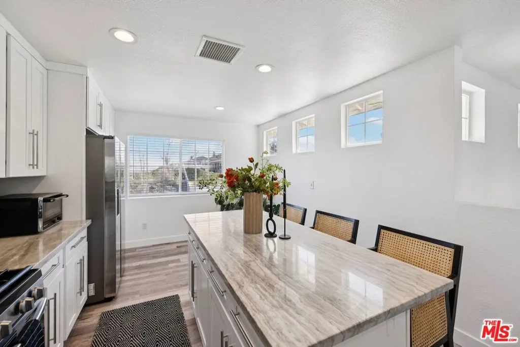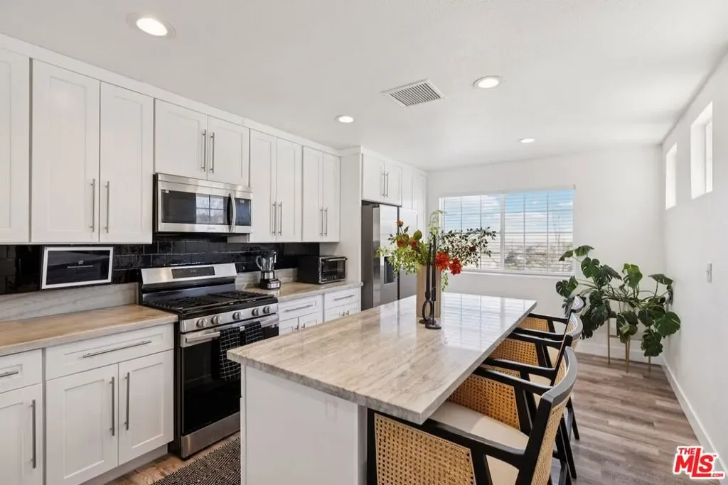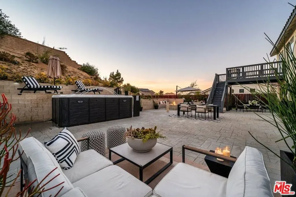 Experience the perfect blend of modern luxury and unparalleled functionality in this beautifully upgraded two-story estate. Situated on nearly a third of an acre in a peaceful Palmdale pocket, this residence offers a rare combination of “resort-at-home” amenities and serious income potential.The heart of the home is the newly renovated gourmet kitchen, featuring crisp white shaker cabinetry, new quartz countertops, and premium stainless steel appliances. Soaring ceilings and newer plank flooring lead you through an open-concept layout anchored by a cozy built-in fireplace.The true magic lies in the floor plan’s versatility. While three spacious bedrooms are located on the main level, a hidden sliding door allows you to isolate the entire upstairs. This massive primary suite can function as a private retreat, a mother-in-law suite, or a turnkey Airbnb/ADU opportunity, complete with its own sense of privacy.Outside, the backyard is a private sanctuary. Relax under the sprawling covered patio or dive into the 12-foot hot tub and swim spa. With mature landscaping, tiered stone walls, and massive side-yard space for a potential future ADU, the possibilities for expansion or gardening are endless.
