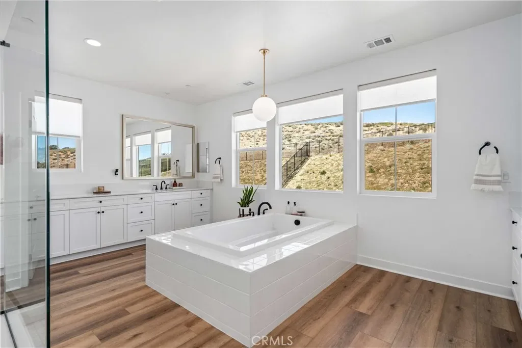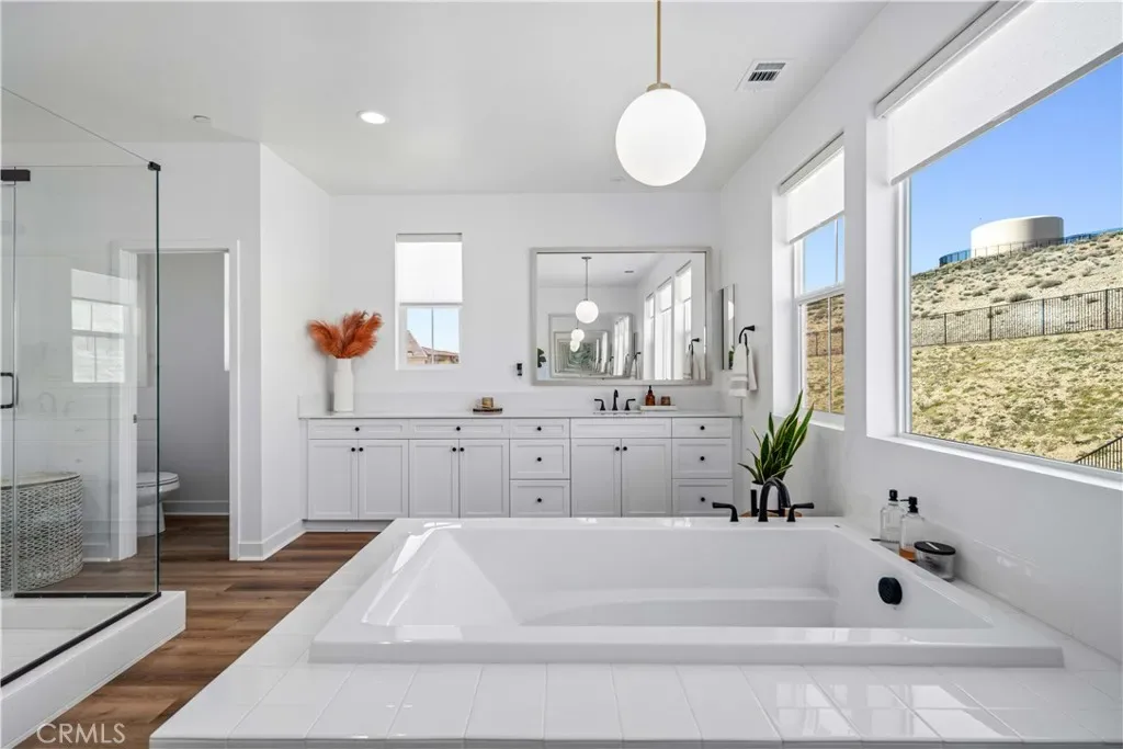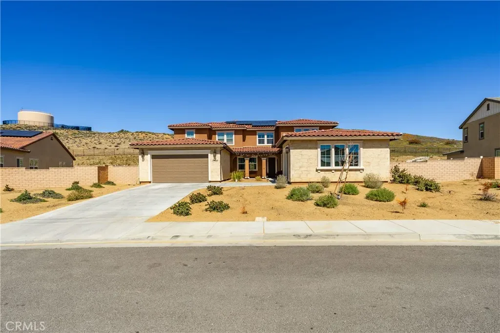 Rare multi-generational luxury estate in the prestigious gated community of Joshua Ranch in West Palmdale. Surrounded by breathtaking mountain and hillside views and miles of scenic biking and hiking trails, this expansive 5,279 sq ft residence offers 6 bedrooms and 5 bathrooms, including a private attached multi-generational suite with its own bedroom, bathroom, kitchen, and living area — creating a fully independent living space ideal for extended family, guests, or flexible living arrangements. A welcoming courtyard entry and striking curb appeal set the stage for the grand interior. Inside, soaring ceilings, expansive living spaces, and abundant natural light create an elegant yet comfortable atmosphere designed for both everyday living and memorable entertaining. The thoughtfully designed floor plan offers multiple gathering spaces while seamlessly blending indoor and outdoor living. The great room, loft, and outdoor California room feature surround sound, creating the perfect setting for entertaining, celebrations, or relaxing evenings at home. Additional upgrades include a custom closet system for elevated organization and everyday convenience. Car enthusiasts and hobbyists will appreciate the 4-car tandem garage plus a separate single-car garage, offering exceptional parking, storage, or workspace flexibility. The tandem garage also includes two EV charging outlets, while energy efficiency is enhanced by a 24-panel owned solar system. The backyard is pre-wired for a future spa, allowing the opportunity to create your own private outdoor retreat. Located within the sought-after Joshua Ranch gated community, residents enjoy beautiful biking and hiking trails, scenic hillside and mountain surroundings, and a peaceful natural setting, all while being conveniently close to shopping, dining, and everyday amenities. Estate-scale homes with true multi-generational flexibility in Joshua Ranch rarely become available. Imagine evenings enjoying the peaceful hillside setting, mountain views, and the quiet beauty that makes this community so special. Experience the space, versatility, and lifestyle that make 39342 Stallion Drive a truly exceptional opportunity.