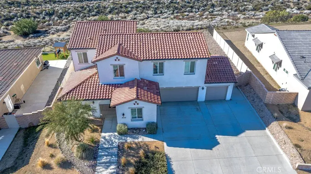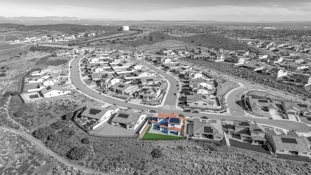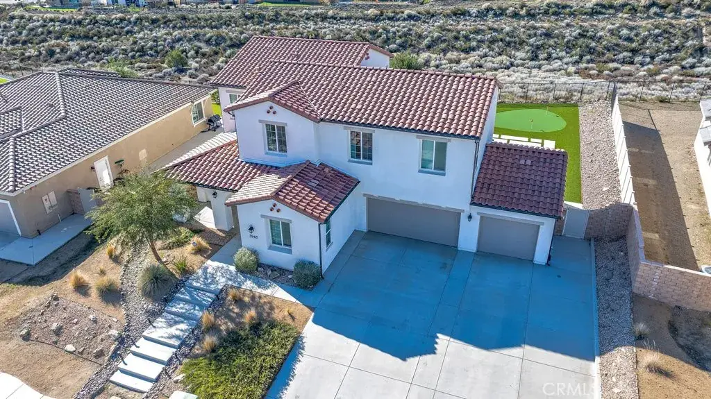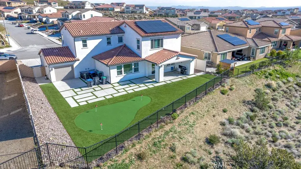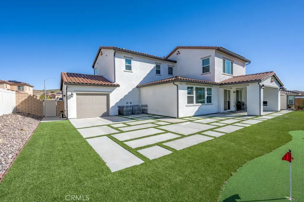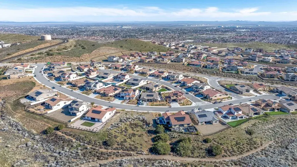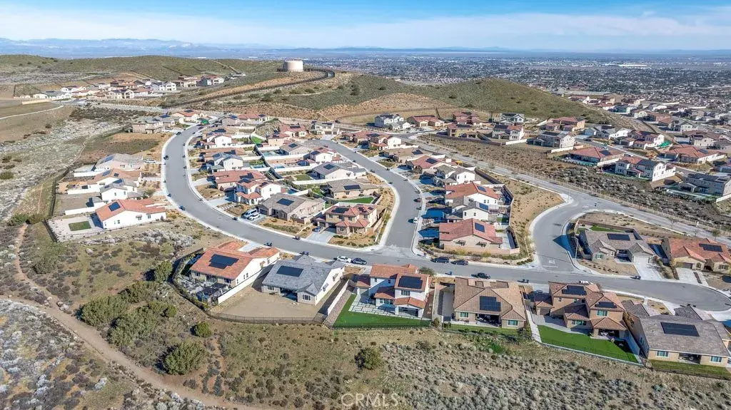 Welcome to this upgraded and energy efficient 2 story West Palmdale view home. This home features a 3 car pull through garage, OWNED solar, downstairs bedroom with private bath, and an open and expansive floorplan. From the entry, the formal living room, wide open kitchen with giant island and great views, large family room, downstairs bedroom with private bath plus a powder room, the first level is loaded with features. There’s a great indoor/outdoor living area with fireplace, butler’s pantry, and mudroom. The 3 car pull through garage is a great way to get bikes, cars, motorcycles or whatever you have into the back yard for detailing and/or storage. On the second level, there is a great currently used as an office/study area, and a gorgeous primary suite with a massive spa like bathroom, separate tub and shower, and roomy walk in closet. With 2 additional bedrooms upstairs plus the laundry room, you will have plenty of space for everyone. This home is just 5 years old, with recessed lighting, ceiling fans, and modern energy efficiency. Fully landscaped front and rear, there’s also putting green to hone your skills in private. Located minutes from Highland High School, Palmdale Medical, Millen Intermediate, IDEA/Cottonwood Elementary, Marie Kerr Park, Trader Joe’s and so much more. You don’t even need to leave the neighborhood to access the great hiking and mountain biking trails that are right here! You’re going to love everything this home has to offer.