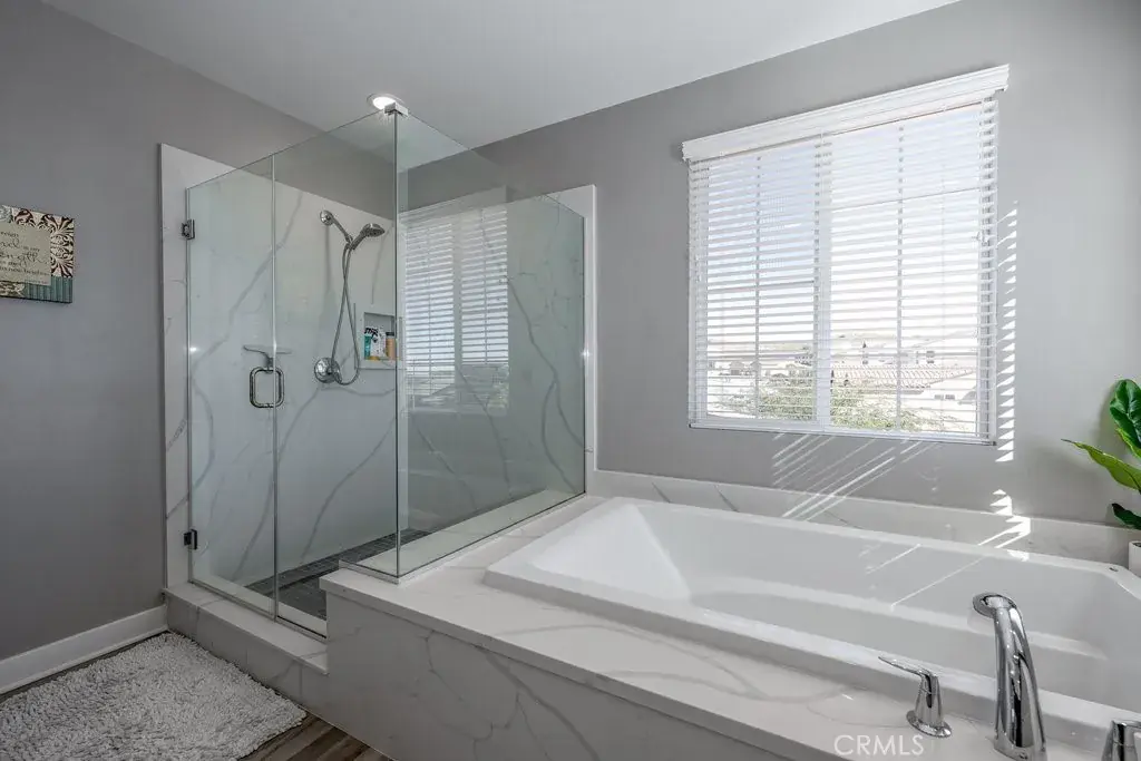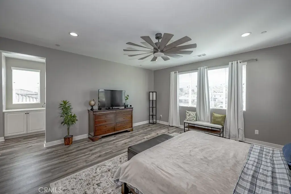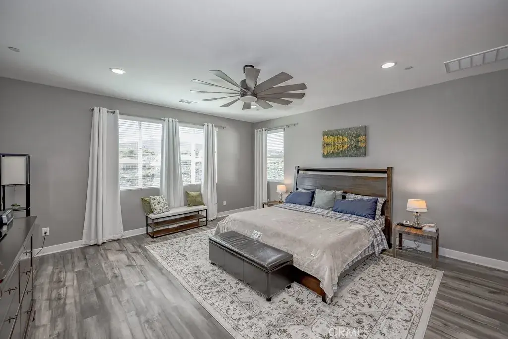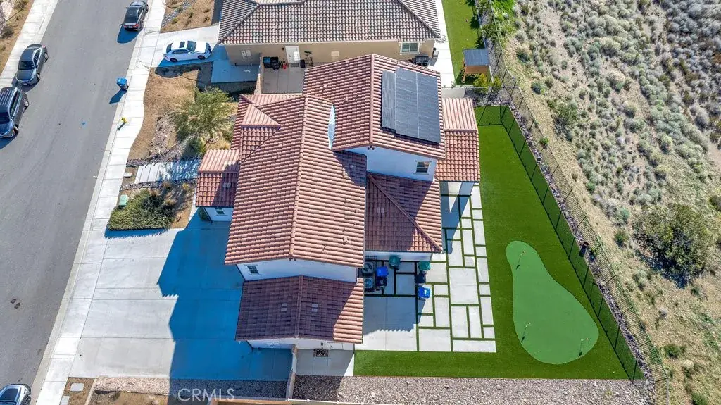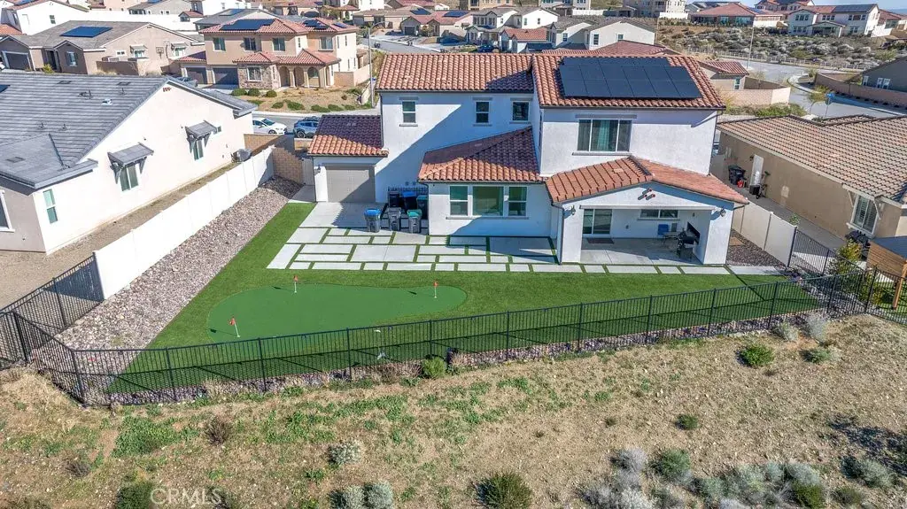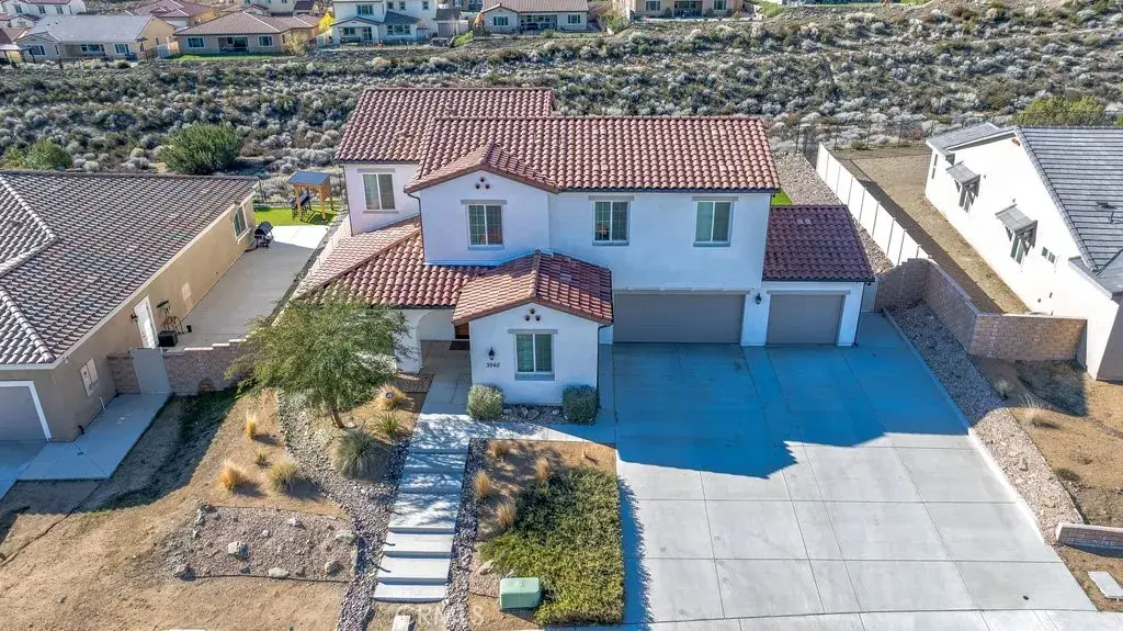 Welcome to this upgraded and energy efficient 2 story West Palmdale view home. This home features a 3 car pull through garage, OWNED solar, downstairs bedroom with private bath, and an open and expansive floorplan. From the entry, the formal living room, wide open kitchen with giant island and great views, large family room, downstairs bedroom with private bath plus a powder room, the first level is loaded with features. There’s a great indoor/outdoor living area with fireplace, butler’s pantry, and mudroom. The 3 car pull through garage is a great way to get bikes, cars, motorcycles or whatever you have into the back yard for detailing and/or storage. On the second level, there is a great currently used as an office/study area, and a gorgeous primary suite with a massive spa like bathroom, separate tub and shower, and roomy walk in closet. With 2 additional bedrooms upstairs plus the laundry room, you will have plenty of space for everyone. This home is just 5 years old, with recessed lighting, ceiling fans, and modern energy efficiency. Fully landscaped front and rear, there’s also putting green to hone your skills in private. Located minutes from Highland High School, Palmdale Medical, Millen Intermediate, IDEA/Cottonwood Elementary, Marie Kerr Park, Trader Joe’s and so much more. You don’t even need to leave the neighborhood to access the great hiking and mountain biking trails that are right here! You’re going to love everything this home has to offer.