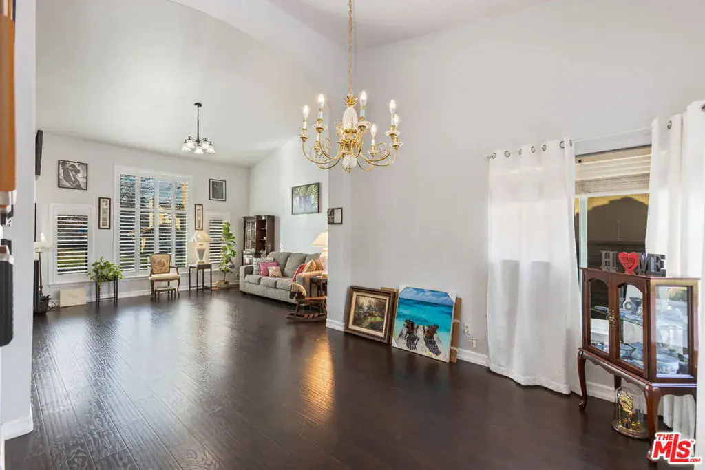 Magnificent five-bedroom, three-bath luxury home located in the desirable Quartz Hill area, on .32 of an acre creates a stunning first impression with tons of curb appeal. The lush front lawn & walkway lead you to the grand double-door entry which opens to a dramatic foyer with elegant staircase & rich dark wood laminate flooring throughout. Gorgeous formal dining and living rooms with high 13′ to 18′ ceilings. The recently remodeled kitchen is exquisite and offers lots of storage and space. Includes soft-close cabinetry & drawers, stylish finishes, mahogany custom walk-in pantry w/adjustable shelves. Plantation shutters line the windows & sliders that open to the stunning backyard. The seamless backsplash with under cabinet lighting & outlets add to the clean look. The great-room, with dining area and fireplace, is ideal for open-concept living. Newly installed Milgard windows with lifetime warranty. Remote lighting w/dimmers in the family room create your choice of atmosphere. Laundry room, guest bedroom and bathroom w/shower are conveniently located downstairs. Walk up the majestic staircase to four additional bedrooms, including the private & pretty primary suite featuring double-doors, a fireplace to add warmth & charm, balcony overlooking the pool, dual closets, and spa-like bathroom with a beautiful view from the tub. More light and bright plantation shutters. Entertainer’s backyard features a sparkling pool, just resurfaced, and hot tub, Woodcrete fencing, covered patio complete w/ceiling fans and lighting for year-round enjoyment. This bountiful home feels spacious yet warm & inviting from the moment you enter. Come see this amazing, must-see, turnkey property for yourself. Perfectly designed for both entertaining & everyday comfortable living. Leased solar panels provide added energy efficiency. Less than one mile from Rancho Vista golf course and restaurant. Sellers are original owners. Classic Quartz Hill area, of course.