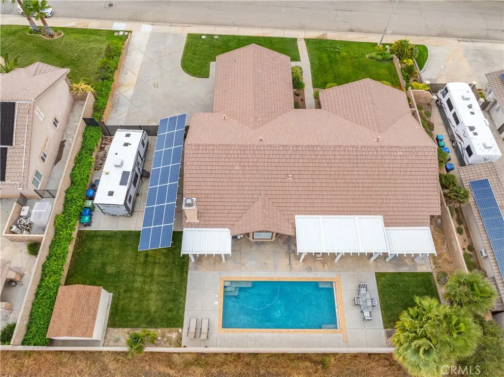Beautiful West Palmdale 4 Bed 3 Bath, with Pool & Paid Solar! Situated in a highly desirable Westside Community, close to dining, shopping, schools and parks, this well cared for 2,771sqft home should definitely be on your radar. With curb appeal that embodies the term picturesque, your smile will start here and only get bigger as you move through the home. As you enter you are wrapped in warm tones, high ceilings and great movement of the arched entries to the dining room and the lovely built in display niches. As you proceed, you find yourself in the large, versatile living room that can easily host the largest family gatherings or game day bashes. With seamless flow it wraps around to the bright kitchen with great counterspace, ample cabinetry and a cheerful breakfast nook, complete with the plantation shutters seen throughout the home. From the kitchen you have open sightlines to the intimate family room, perfect for family game nights or snuggling up for a movie night, topped off with a glowing fire in the beautiful stone fireplace. Ideal for a multi-generation family, on this side of the home you will find the first of the 4 bedrooms w/adjacent bathroom. Rounding out this portion of the home, the well appointed laundry room w/great storage & dedicated sink. Heading to the other side of the home, you will move down a short hall to the second and third bedrooms with a sizable shared bath. Finally, let’s explore the fantastic primary suite with ample space, walk-in closet and beautiful bath w/palatial soaking tub, dual sinks & walk-in shower. From your primary suite, you also have direct access to the immaculate backyard & pool, perfect for a swim before bed on those warm summer nights. For hot summer days, be prepared to be the host of all hosts for fantastic BBQ’s and pool parties with space to hang in the shade under your choice of 3 covered patio areas. Great location, great layout, great vibe, great choice for your new home!