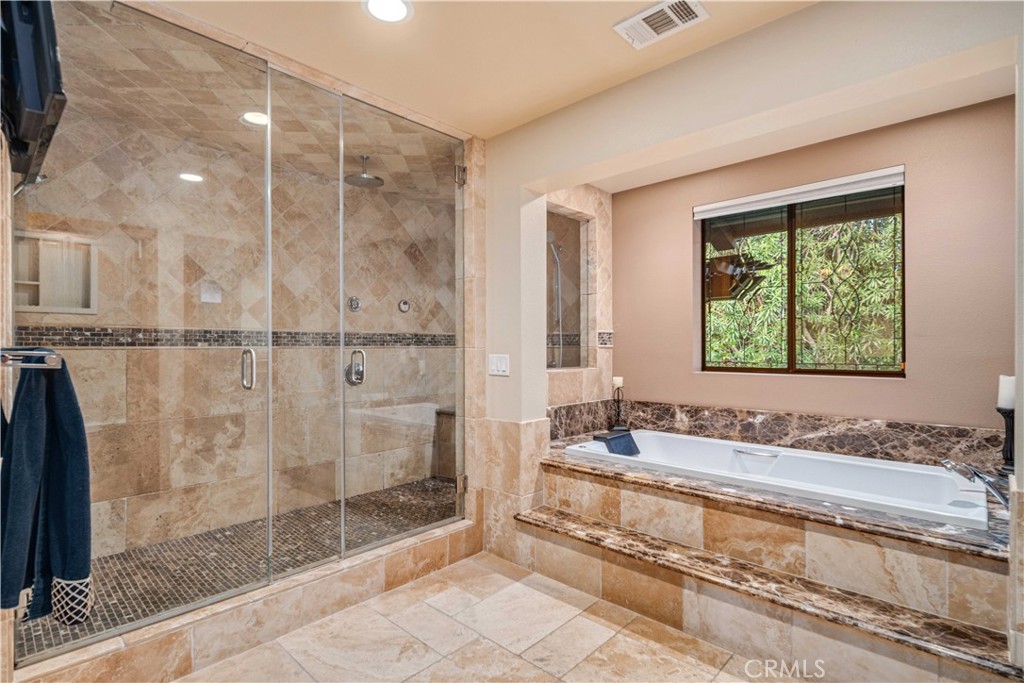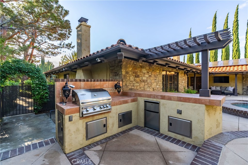 West Palmdale Spanish-Style Estate w/ Fully Paid Solar, Resort-Style Pool & Spa, 3-Car Garage, And A Private Lush Entertainer’s Backyard! Located in prestigious Godde Hill Estates, this stunning single-story home offers timeless Spanish architecture, a classic clay tile roof, and exceptional curb appeal. Arrive to immaculate landscaping with mature date palms, olive trees, a tranquil fountain, decorative wrought iron gates, custom concrete, and a paver pathway leading to a breathtaking Tuscan courtyard with travertine entry. Through the solid oak double doors, you’re welcomed into a formal living room with a cozy fireplace, and an elegant formal dining room featuring a tray/coffered ceiling, crown molding, wainscoting, porcelain tile flooring, and a crystal chandelier. The gourmet kitchen showcases granite countertops, a center island with bar seating, KitchenAid stainless steel appliances, double ovens, a Viking 6-burner cooktop with commercial hood, built-in microwave, refrigerator, dishwasher, trash compactor, and a triple sink with prep area. The spacious family room offers real wood flooring, a second fireplace, built-in surround sound, and a wet bar with sink, refrigerator, and ample storage. The expansive primary suite features French doors and a spa-like bathroom with dual vanities, marble countertops, travertine finishes, Jacuzzi tub, and an oversized dual shower with rain head and aromatherapy steam system, along with a custom walk-in closet and direct access to a private pool bath. Additional highlights include a large walk-in pantry, intercom system, a charming kitchen nook with a built-in desk and custom drapery, and a 3-car garage with built-in storage. The backyard is a true entertainer’s paradise with a fully automated pool & spa, built-in BBQ, fire pit, lush landscaping, grassy area, putting green, batting/golf cage, and a wraparound covered patio with outdoor surround sound. A rare blend of luxury, privacy, and resort-style living—this home truly has it all!