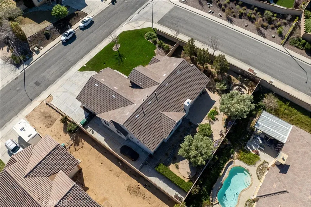 Positioned to represent one of the best values in the area, this beautifully maintained and move-in ready home sits on a rare 1/3 acre lot with RV parking and extensive upgrades throughout. Experience the polish and sophistication of a true model-like home, ideally situated on a sprawling lot with sweeping mountain views. Designed for those who appreciate quality and refinement, this meticulously maintained residence offers plush, manicured landscaping in both the front and back yards, creating a private and serene setting. Extensive upgrades elevate the home throughout, including fresh interior paint and a professionally re-stuccoed exterior finished with 25-year paint. Striking oversized double wrought iron front entry doors with operable glass panels welcome in natural light and refreshing summer breezes. Inside, you’ll find poly wood shutters, high-profile baseboards, LED lighting throughout, and thoughtfully selected finishes that blend comfort with modern elegance. The kitchen is appointed for both everyday living and entertaining, featuring granite countertops, above and below-cabinet LED lighting, a breakfast bar, and updated premium appliances–including a versatile oven with 20 cooking functions (air fryer and convection included), a 5-burner cooktop, and a dishwasher. A butler’s pantry seamlessly connects to a dedicated 12′ x 10′ movie room complete with wall projector and 9′ screen, offering a true in-home theater experience. The expansive primary suite is accessed through double doors and serves as a private retreat, complete with a custom Closet World walk-in closet, garden tub, and oversized shower. Additional highlights include waterproof-backed carpet, updated hall bath with new tub and toilets, a large linen closet, laundry room with sink, and multiple architectural niches perfect for displaying art. Outdoor living is equally impressive, featuring a built-in gas firepit, dog run with drainage, mature evergreen landscaping, olive trees, and blooming wisteria–all maintained on efficient drip systems The property is also equipped with two tankless water heaters, RV waste dump, abundant parking, and an oversized two-car garage. Additionally, the home is pre-plumbed for a future ADU or casita, offering flexibility for extended living or guest accommodations. Set within a highly desirable, quiet westside neighborhood with no Mello-Roos and no HOA, this exceptional property offers a rare blend of luxury, functionality, and long-term value.