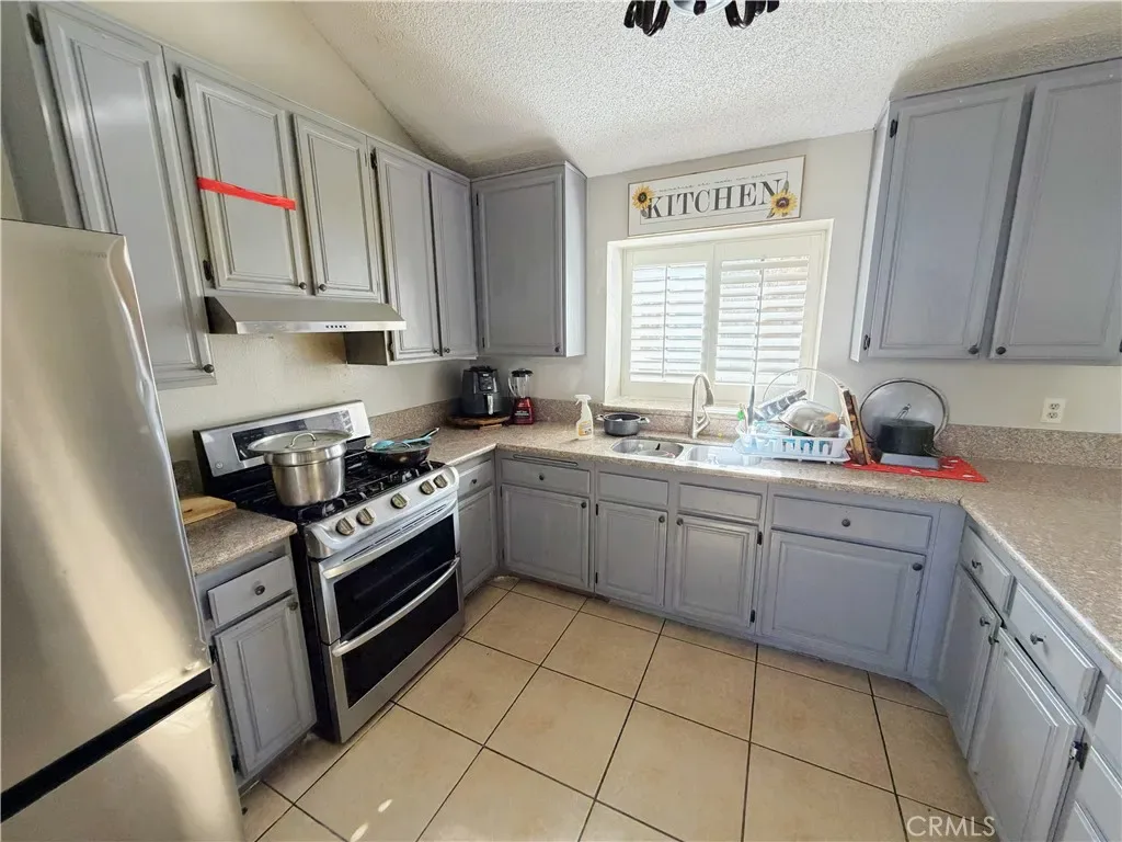 A stunning remodeled home that truly stands out! This beautifully updated single-family residence offers 4 bedrooms and 3 bathrooms with approximately 2,175 square feet of living space on a generously sized lot. Located on a quiet cul-de-sac, the neighborhood reflects a strong sense of pride of ownership throughout. Upon entry, you are welcomed by an open floor plan with vaulted ceilings and abundant natural light that enhances the spacious feel of the home. The formal dining room is currently utilized as a home office but could easily function as a fifth bedroom if desired. The living room features a cozy gas fireplace, while tile flooring extends throughout the main level, with the exception of the downstairs bedroom, which features wood-laminate flooring. The spacious kitchen is ideal for cooking and entertaining, offering ample cabinetry and a comfortable eat-in dining area. All four bedrooms provide generous space, including the primary suite with its own private bathroom and dual sinks. The backyard is perfect for entertaining and includes a low-maintenance turf lawn for easy upkeep. Additional highlights include an attached two-car garage with direct access and laundry hookups, making this home both practical and inviting.
