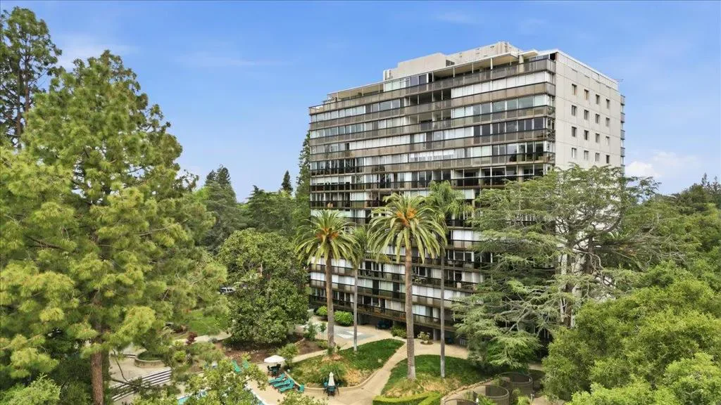 Experience refined, loft-inspired living in this exceptional 4th-floor corner residence in the heart of downtown. Surrounded by serene tree-top views, this desirable home is filled with natural light, highlighted by expansive floor-to-ceiling windows and an airy, open-concept layout. Designed for both everyday comfort and effortless entertaining, the living, dining, and kitchen spaces flow seamlessly together. Elegant hardwood floors and a well-appointed kitchen add style and functionality, creating a space that feels both sophisticated and inviting. As a corner unit, it enjoys windows on two sides, reducing shared walls with neighbors and maximizing natural light throughout the day. Whether enjoying a quiet morning at home or stepping out to explore, the location offers unmatched convenience just moments from Stanford, Caltrain, fine dining, boutique shopping, and vibrant city life. Residents enjoy a full suite of amenities, including 24-hour front desk, designated parking, fitness center, beautifully maintained pool and outdoor entertaining area, offering an exceptional blend of comfort, convenience, and elevated urban living. HOA dues cover most utilities for added ease. Great opportunity for both homeowners and investors to own in one of the top communities in Palo Alto.