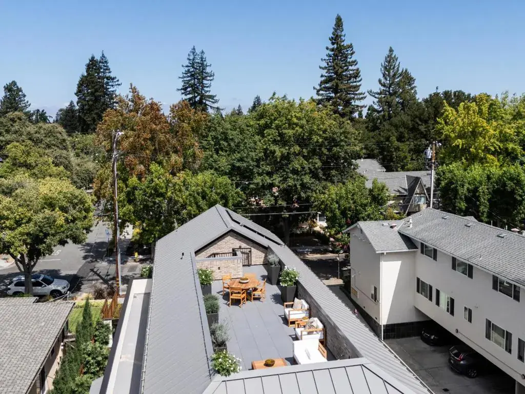 Timeless high-end new construction in sought-after Downtown Palo Alto.Penthouse one level living at its best with no one above or below you. Private elevator takes you from your main level vestibule into your expansive living space.Great room w/soaring cathedral ceilings with retractable walls of glass that open onto expansive wrap around terraces. Gourmet kitchen showcases sought after Taj Mahal countertops,Thermador appliances, and large walk-in pantry.Atrium staircase leads to a private rooftop garden w/raised planters & views toward the western hills.A space unlike any other in downtown Palo Alto.Primary bedroom suite w.customized walk-in closet & en suite bath with dual-sink vanity, freestanding tub, curbless shower, & private commode room.Two additional en-suite bedrooms.First floor detached office to the front of the building & a detached private gym to the rear w/a private patio.European Oak hardwood flooring w/herringbone finish in great room.Designer tiles & plumbing fixtures compliment the rich timeless aesthetic throughout.Unparalleled architecture with extensive and custom brick work.Subtle elegance & refined finishes differentiate this penthouse living from the masses.This unique home will stand the test of time for generations and centuries to come.