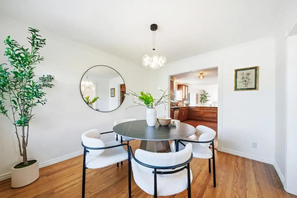 Situated on a quiet corner lot in Palo Alto, this home offers a thoughtful balance of comfort, flexibility, and indoor-outdoor living. Hardwood floors extend throughout a well-defined layout featuring a formal living room w/ a gas fireplace, a separate family room, and a dedicated dining area that flows seamlessly into the kitchen. The updated kitchen anchors the home w/ granite countertops, custom cabinetry, SST appliances, and a breakfast bar, all opening to the main living and entertaining spaces. The primary suite provides a private retreat w/ a walk-in closet & an en-suite bath featuring a marble-tiled shower. Additional bedrooms are generously sized, and the hallway bath includes a double vanity and a jetted soaking tub. A garage conversion offers additional flexible living space w/ a private entry and direct access to the kitchen, perfect for office or guest room. Outdoor spaces with a landscaped backyard showcasing mature fruit trees, flowering shrubs, a tranquil fishpond, and a spacious deck with built-in seating. Patio access from the family room and primary bedroom enhances the indoor-outdoor connection. Conveniently located near Palo Alto schools, parks, shopping, dining, and major Silicon Valley commute routes.