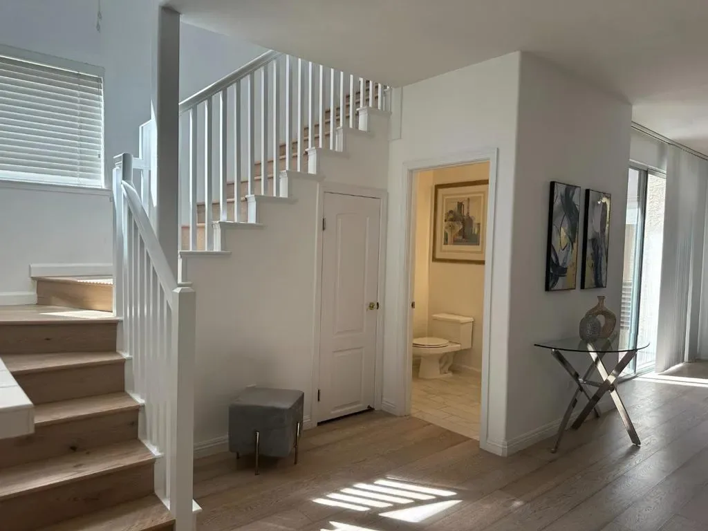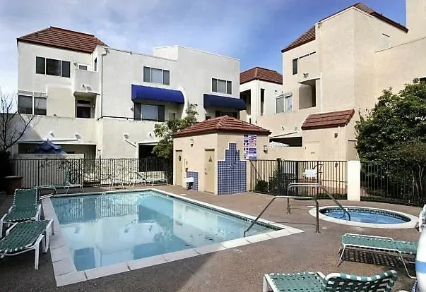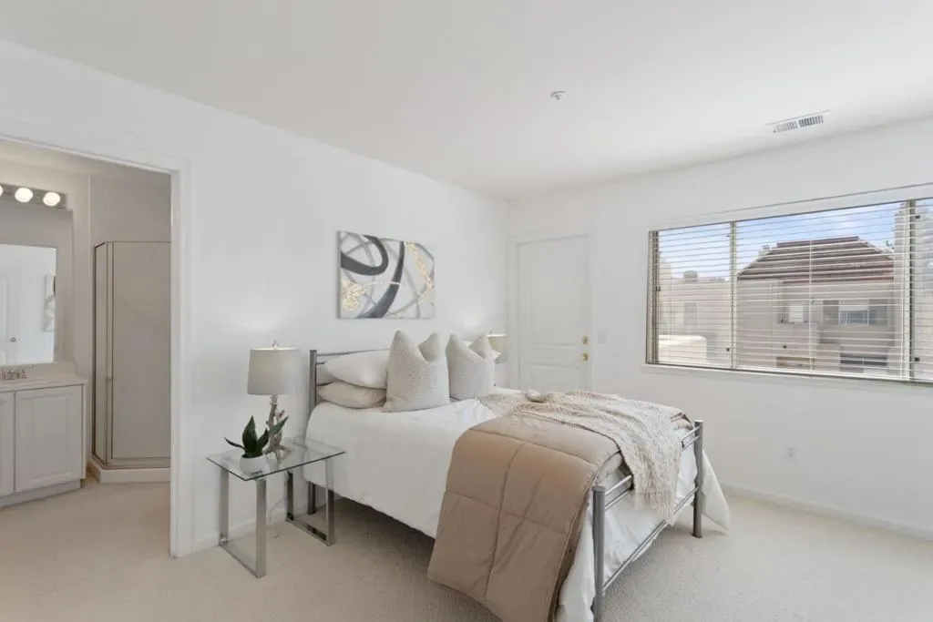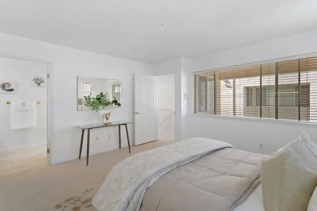 This 2 story bright townhouse style home was one of the models for the complex. Green house windows, large sliding glass doors & high ceiling flood the home in sunlight. The unit features a spacious living/dining area, fireplace, balcony, extra storage, new paint, wood floors throughout 2 master bedrooms, washer/ dryer, A/C, recessed lighting, & skylight. Palo Alto Central boasts great landscaping with plants, fountains, a rose garden, swimming pool, Jacuzzi & a recreation/conference room. Security gates & underground secured parking. Located on California Avenue’s Business District. everything is walking distance. Mollie Stones, Country Sun, coffee shops, the post office, the park and fine dining. The farmers market is every Sunday year round with music, fresh organic produce, flowers and an assortment of foods to sample. You can walk, bike or take a free Shuttle to Stanford or Cal Train to San Francisco.