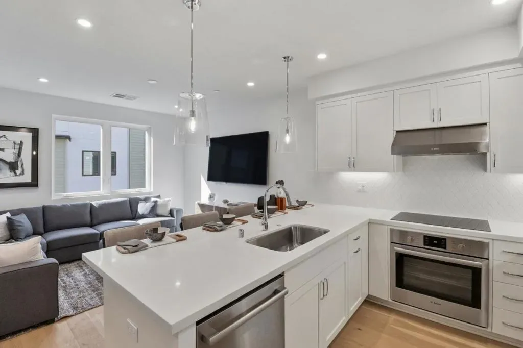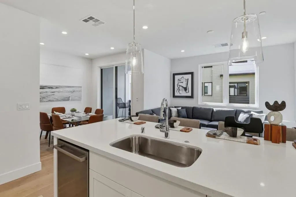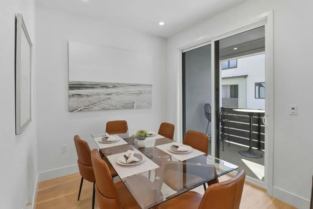 Residence 3 offers 3 bedrooms, a ground floor den, and 3 full bathrooms ideal for families, guests, or a home office. The open-concept main level features a kitchen, dining area, and family room that flow seamlessly together. The kitchen is appointed with Bosch stainless steel appliances including refrigerator + LG washer/dryer, walk-in pantry, quartz countertops, and shaker-style white cabinets. Engineered wood floors on the first and second levels add warmth and elegance. The top-floor primary suite includes a walk-in closet and en-suite bathroom, providing a private retreat. Additional bedroom and a full bath offer flexibility. Enjoy outdoor living with a private patio and deck. Discover 28Fifty, a new community of 48 modern townhomes by SummerHill Homes in desirable Midtown Palo Alto. Community amenities include access to a central park area for gatherings and relaxation. Conveniently located near major employers, highways, and the Dumbarton Bridge, and less than 3 miles from downtown Palo Alto. Top-ranked schools. Quick move-in!