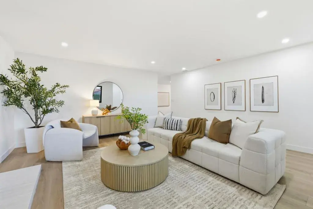 Welcome to 315 W Meadow Drive, a fully remodeled 4-bedroom, 2-bathroom home on a large, flat lot in Palo Alto. Upon entry, a cozy living room with a wood-burning fireplace flows seamlessly into the heart of the home the kitchen.The kitchen and dining room combo offers both formal and casual dining options, featuring custom-fabricated and installed cabinetry, natural stone quartzite countertops, and an oversized island with sink. Brand-new stainless steel appliances include a microwave drawer, wine fridge, and gas range. Both bathrooms showcase oversized floating vanities, ample lighting, and large shower spaces. The front and backyard are landscaped for low maintenance, complete with outdoor lighting and ready for the buyers personal touch. Conveniently located near top-rated Palo Alto schools, parks, shopping, dining, and major Silicon Valley commute routes.