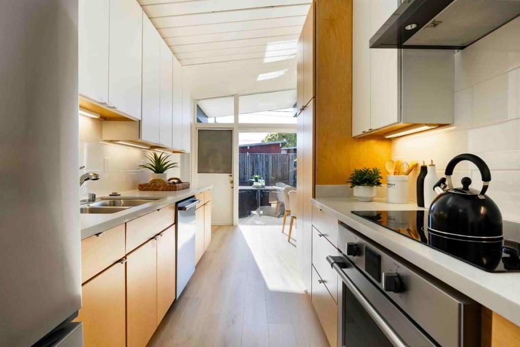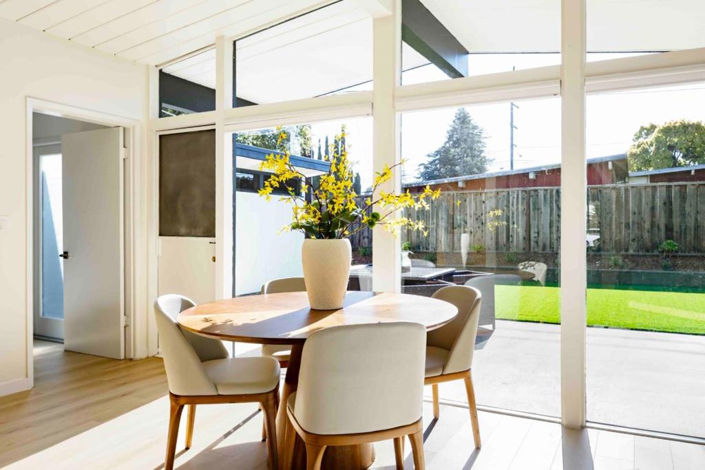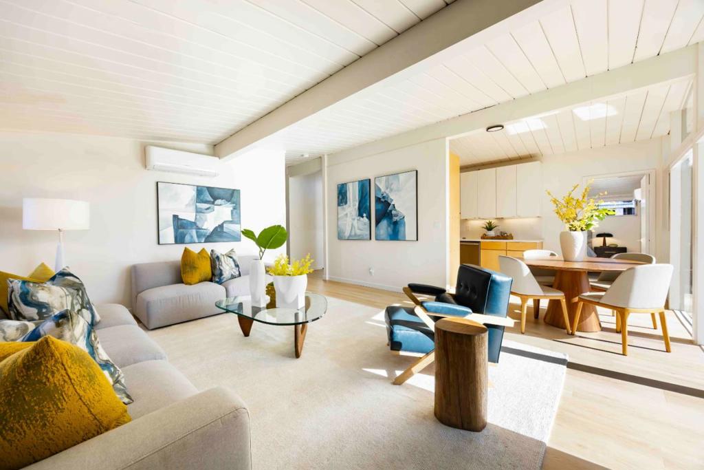 Beautifully remodeled and brimming with timeless appeal, this midcentury modern home seamlessly blends classic design elements with fresh, contemporary interiors. Vaulted paneled ceilings, expansive walls of glass, and sleek flooring create a light-filled ambiance throughout, while the open floorplan connects a welcoming living room with fireplace to the dining area and quartz-appointed kitchen, all complemented by four comfortable bedrooms. Mini split HVAC in each bedroom and the living room ensures personalized comfort, and a covered carport with EV charger adds everyday convenience. The spacious backyard invites outdoor enjoyment, all in an outstanding location near numerous parks, just a short drive to premier shopping and dining, with easy access to Caltrain and Highway 101, and served by top-rated Briones Elementary, Fletcher Middle, and Gunn High (buyer to verify eligibility).